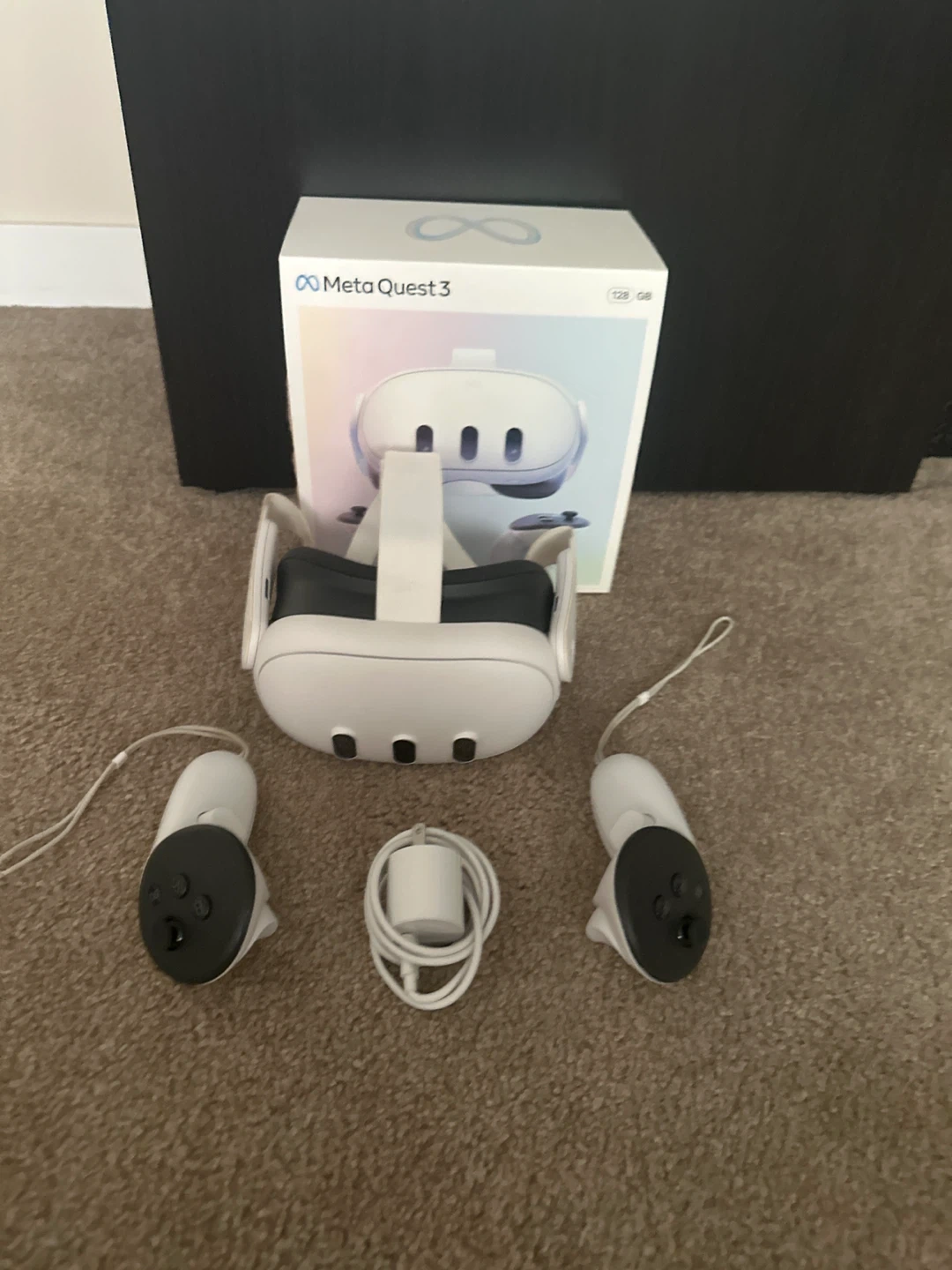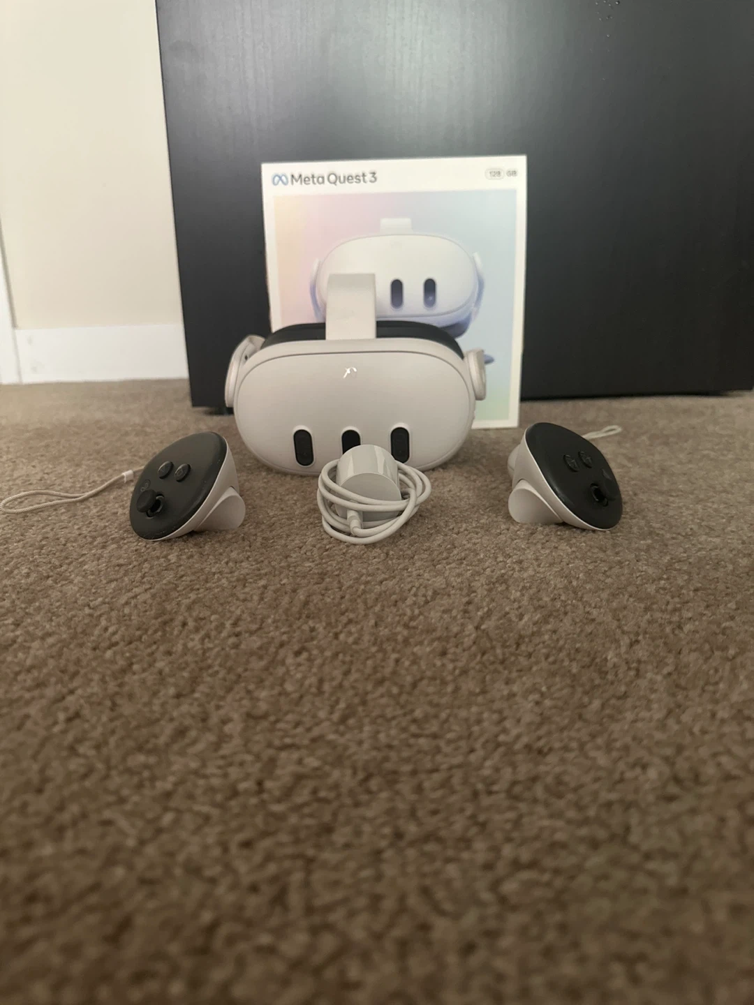Selling a Meta Quest 3 VR headset with 128 GB of storage! It's in excellent condition and comes with the original box and all included components.