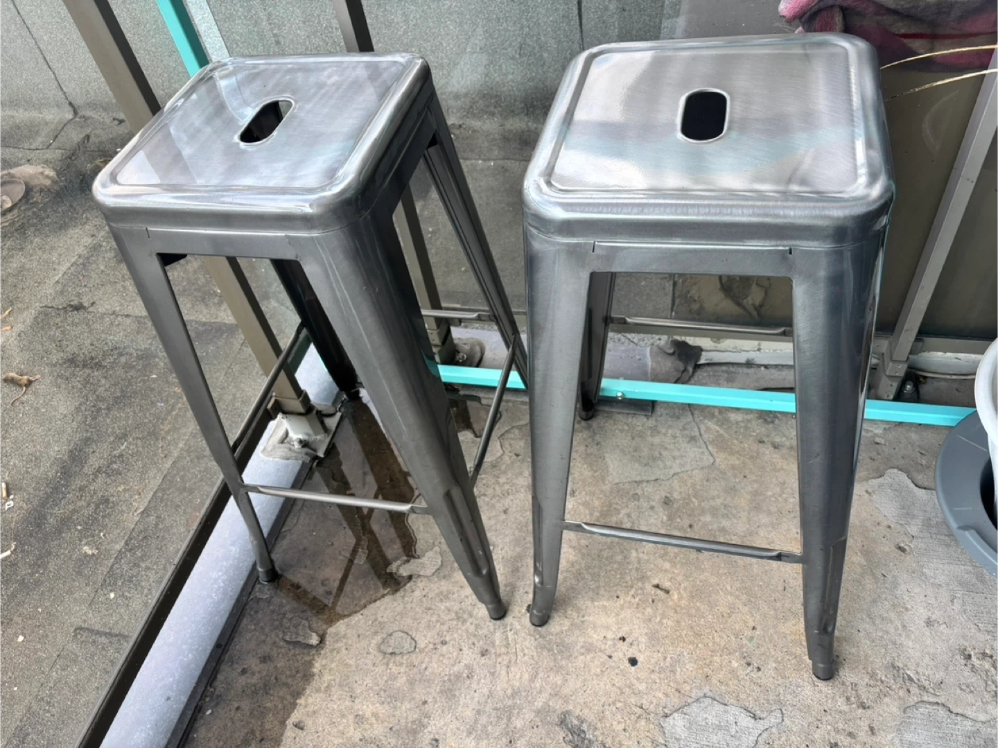 12Selling a set of two metal bar stools. They're in great shape and would look great in a kitchen or bar area. They have a sleek, modern look and are very sturdy!