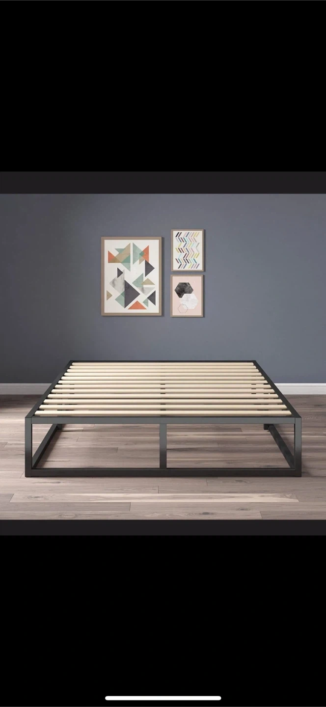 23Selling a sturdy metal bed frame in black. It's in great shape and ready for a new home! The frame is easy to assemble and provides excellent support for your mattress. Perfect for a minimalist bedroom setup