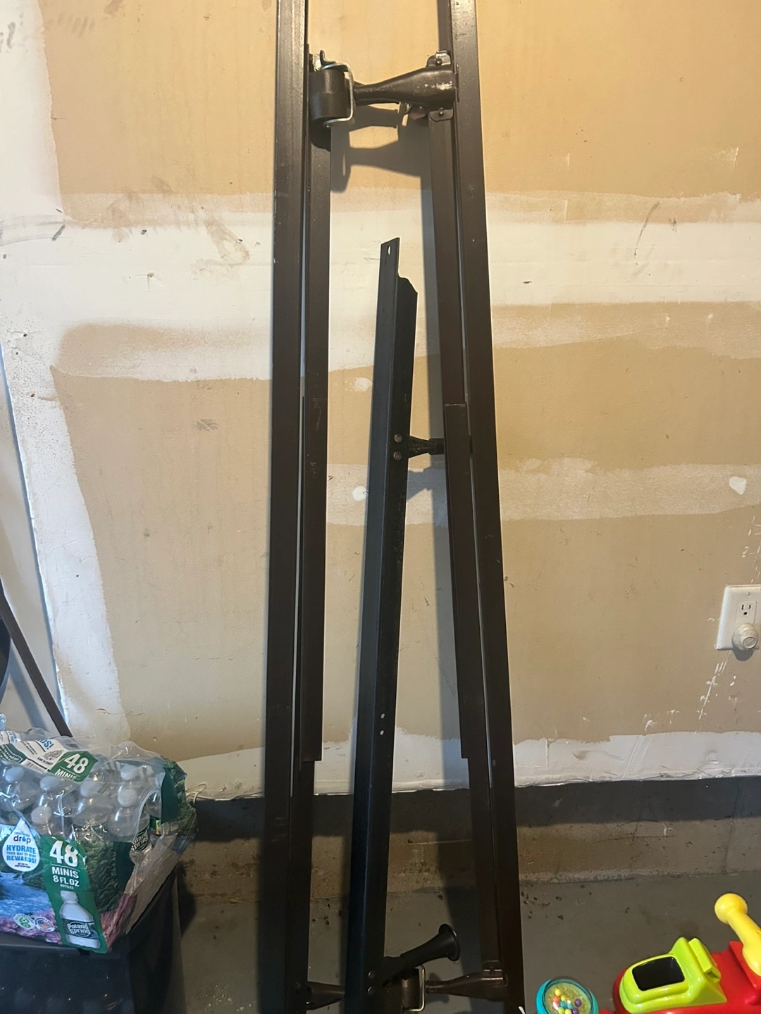Selling a metal bed frame in black. It's in good condition and ready for a new home! Perfect for setting up a bedroom quickly and easily I used it for queen bed but may be adjusted for twin and queen bed.