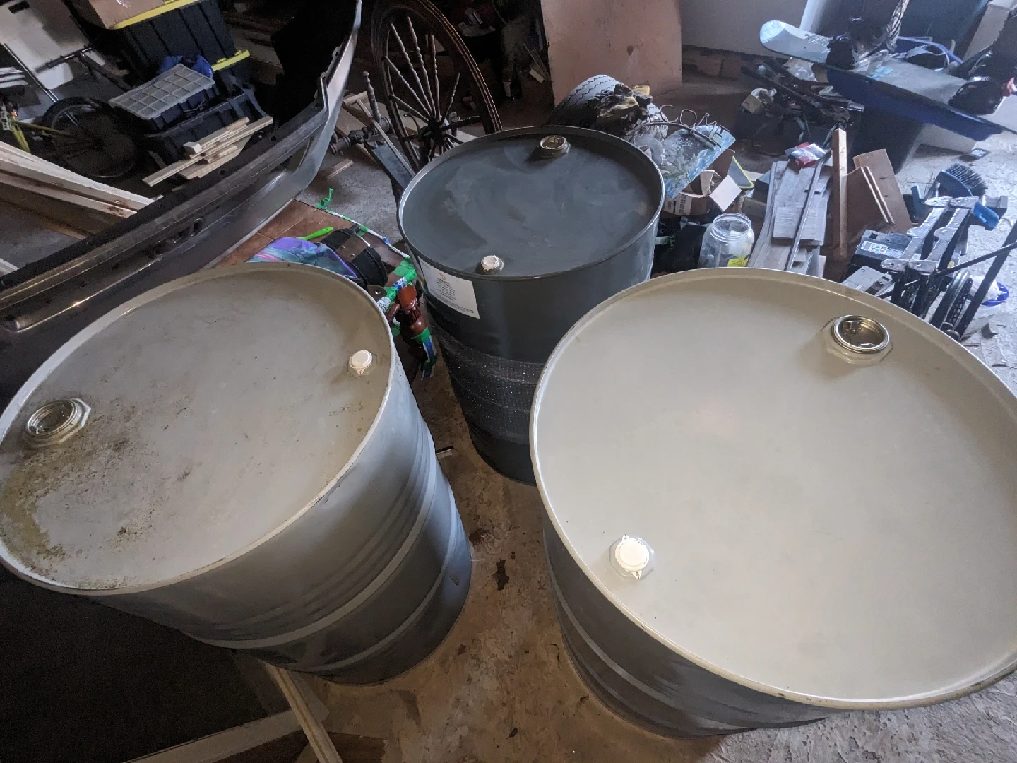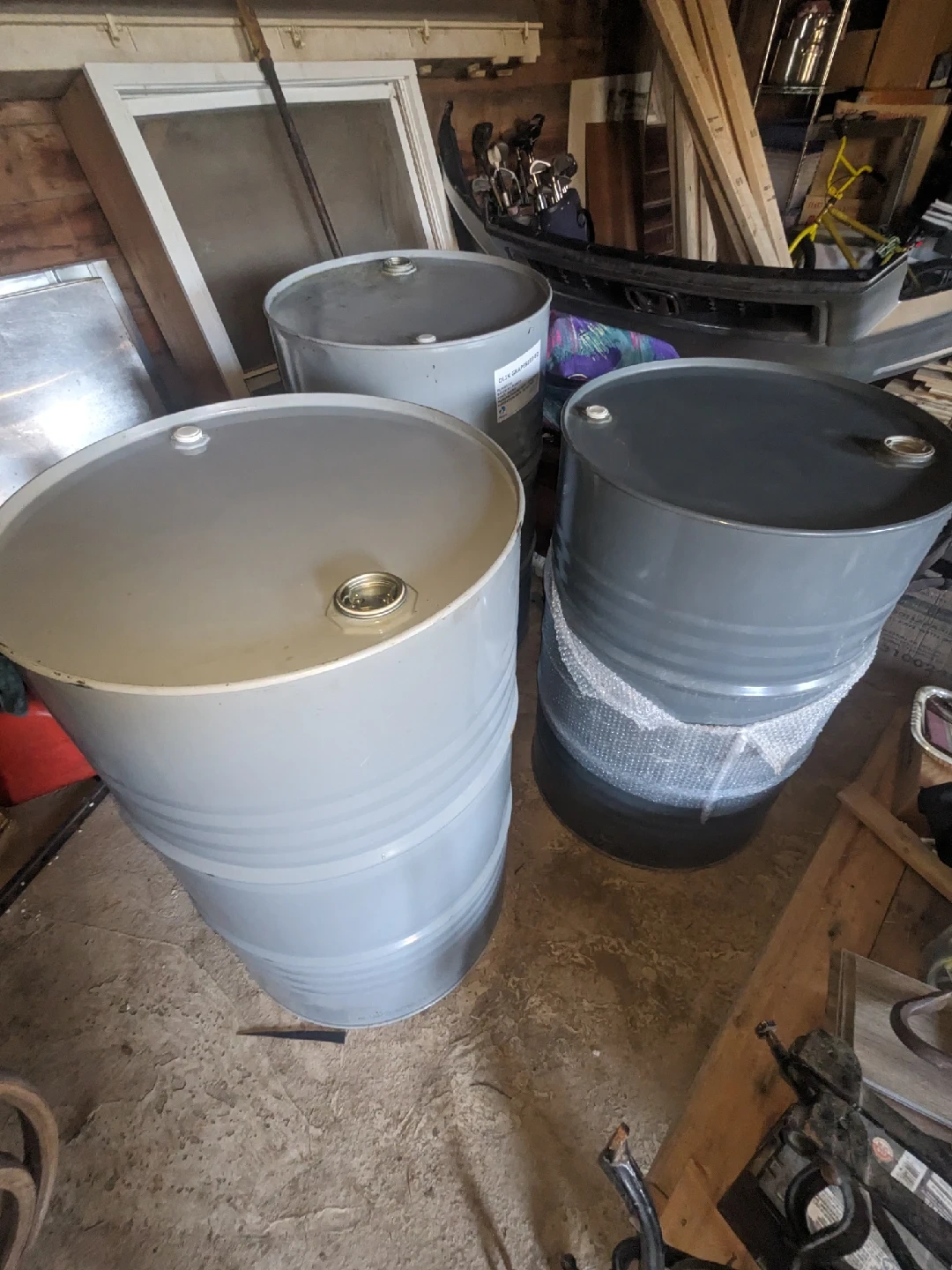 156 Food-Grade metal drums available. They are clean good condition and ready for use. One is black, the other are grey/silver. location at saint-isidore Ontario but I can deliver for extra fees or pick up the location 30$ each barrels drums