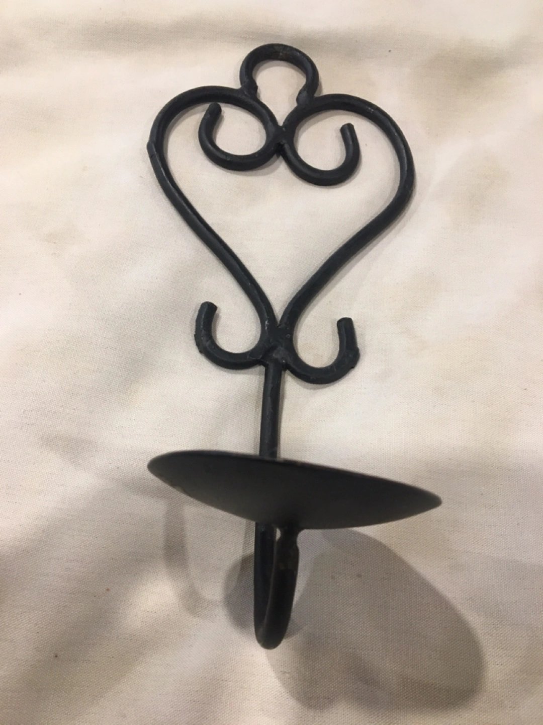 Cute metal candle holder shaped like a heart! It's in great condition and would look lovely in any room