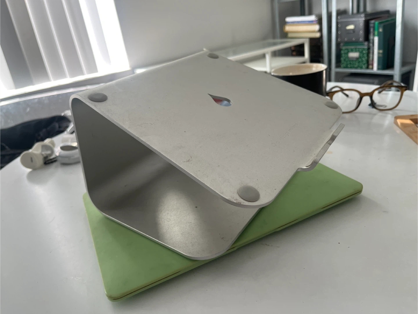 266Selling a Rain Design mStand in silver. It's in great condition and perfect for raising your laptop to a more comfortable viewing height. This stand is sturdy and helps improve your posture while working! Perfect for any desk setup