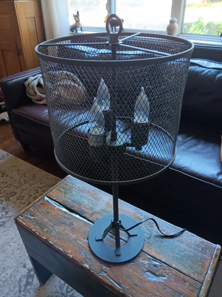26Looking to add a touch of modern industrial style to your space? This metal mesh accent lamp could be just the ticket! It's in great shape and ready to brighten up any room. Bought from Wayfair