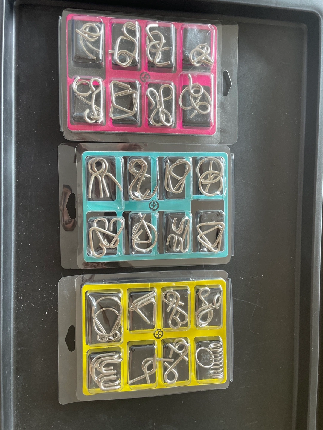 122Selling three sets of metal puzzles! Each set comes with a variety of brain teasers to challenge your mind. Perfect for puzzle enthusiasts or anyone looking for a fun and engaging activity! Negotiable