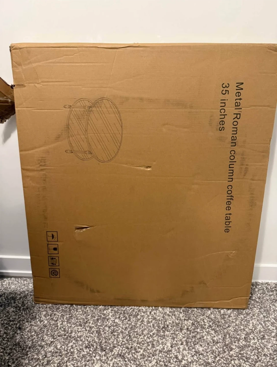 10MOVING OUT SALE! Selling a metal Roman column coffee table! It's 35 inches wide and has a tabletop loading capacity of 150lbs. The table is 18 inches in height. It has a nice rustic look and would be a great addition to any living room. It’s box packed, never opened nor assembled. Firm price.