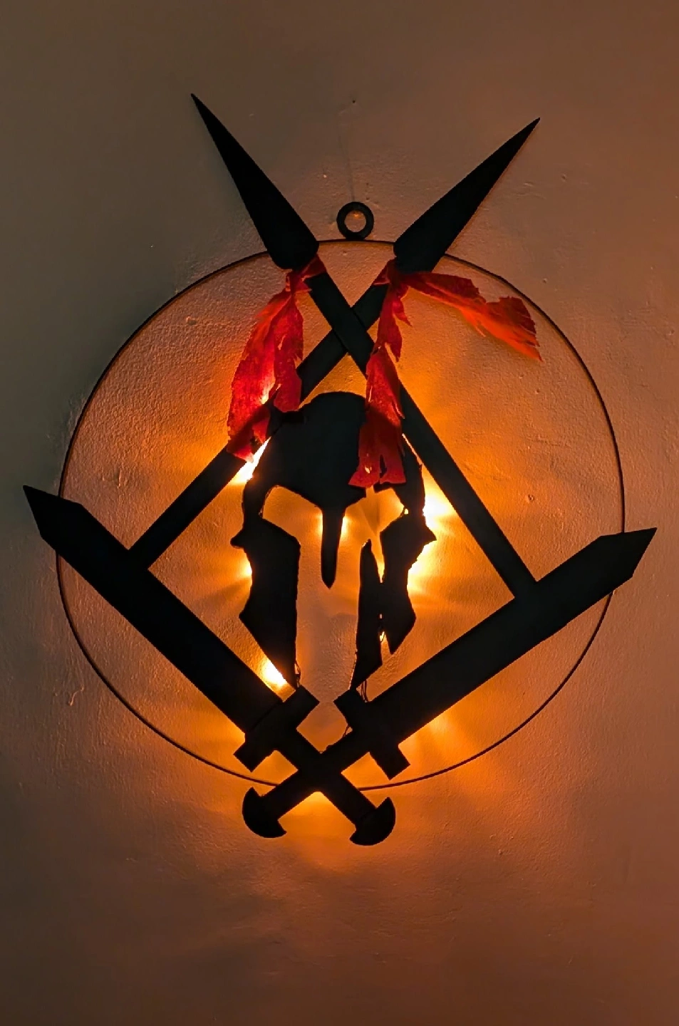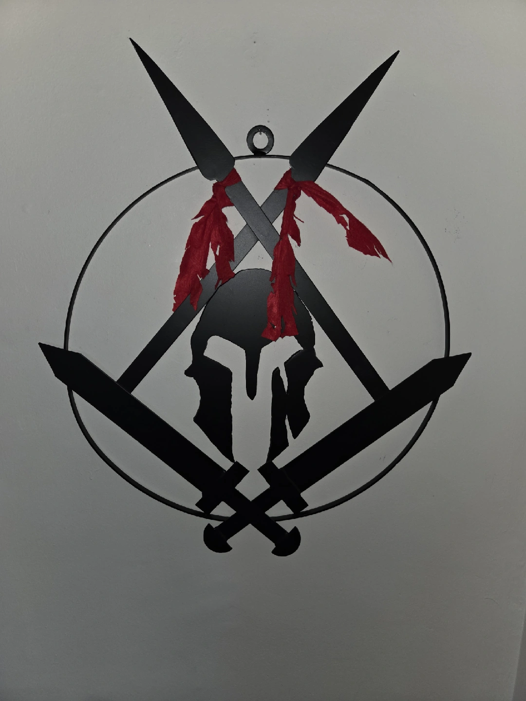65Cool metal wall art featuring a Spartan helmet design with crossed swords and spears. It adds a unique touch to any room!