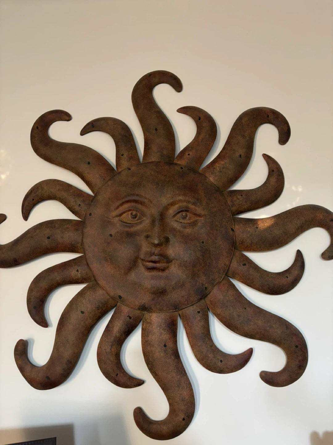 67Unique metal sun wall art to brighten up your space! This piece features a rustic, textured finish, giving it a warm and inviting look. Perfect for adding a touch of character to any room. From Pier 1.