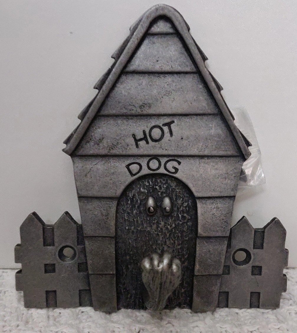 Metal dog house wall hook. Comes with screws for mounting. Made in Canada.