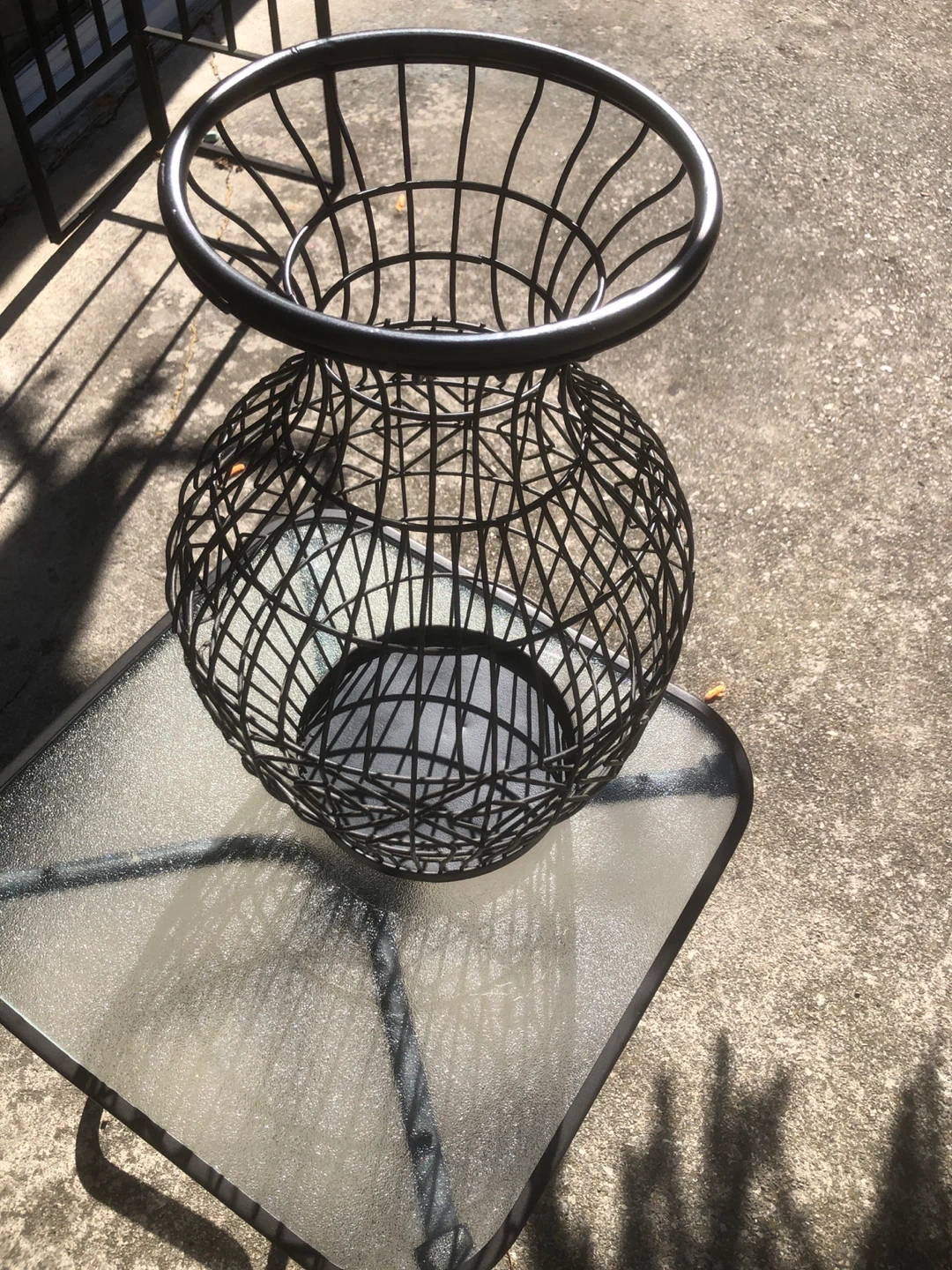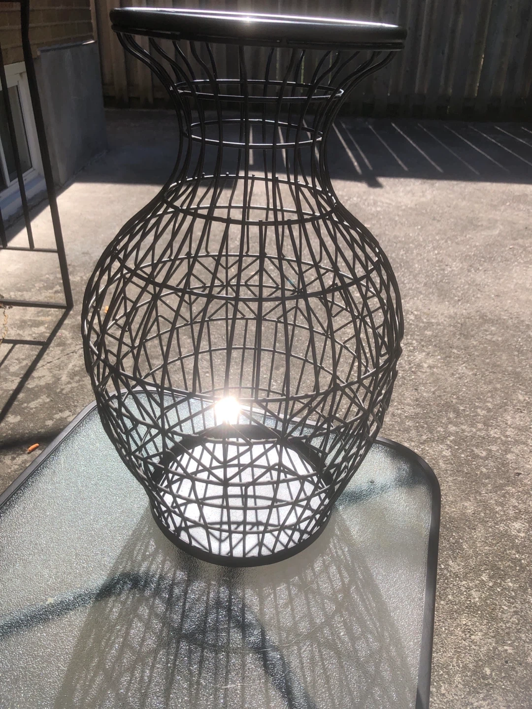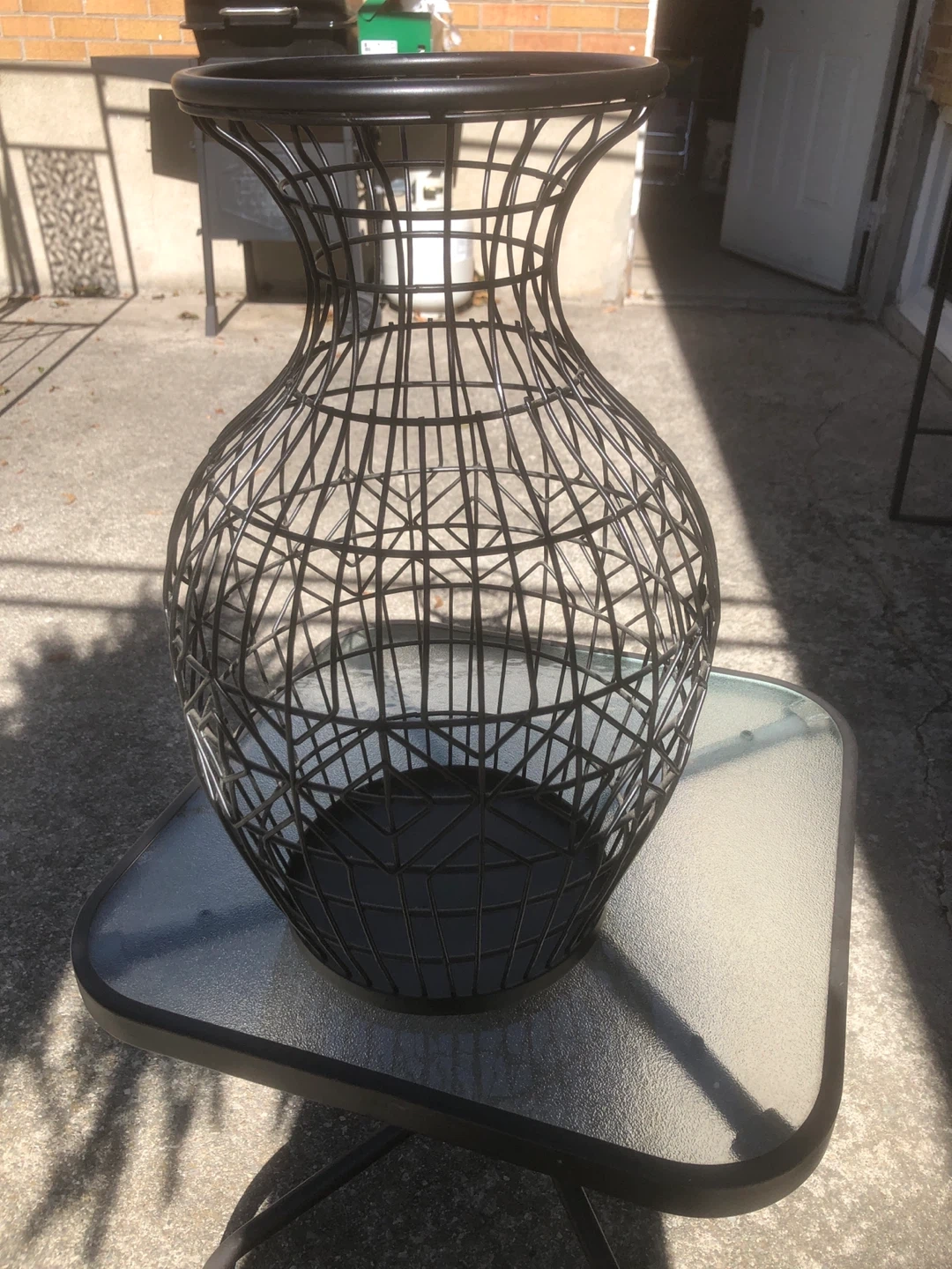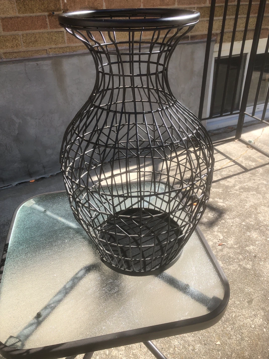 Selling a black metal wire vase. It's in great condition and would look lovely with some flowers or as a standalone decorative piece