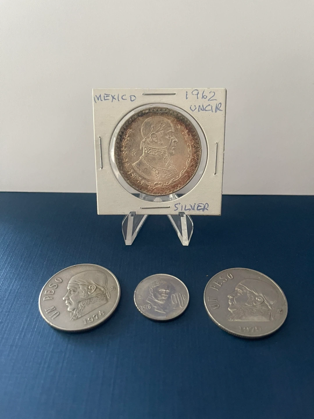 Collection downsizing! Small Mexico lot with uncirculated 1962 silver peso.