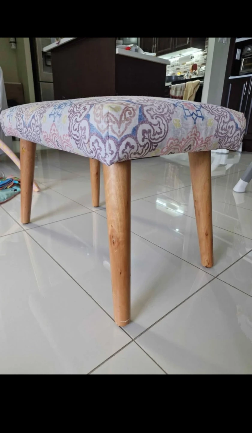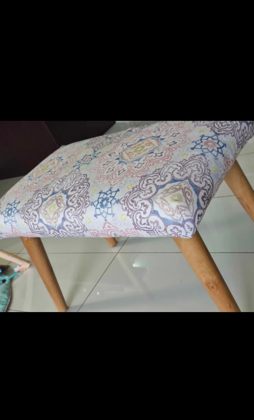 This bench features a colourful mandala-style fabric pattern. It has four wooden legs providing sturdy support. It's a great accent piece for your entry way or living room or bedroom.