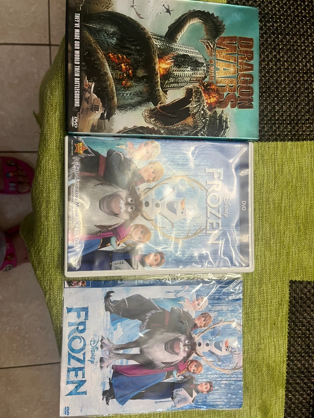 Bundle of three DVDs including Dragon Wars and two copies of Disney's Frozen. Frozen was awarded Best Animated Movie of The Year. Magic codes are included inside.