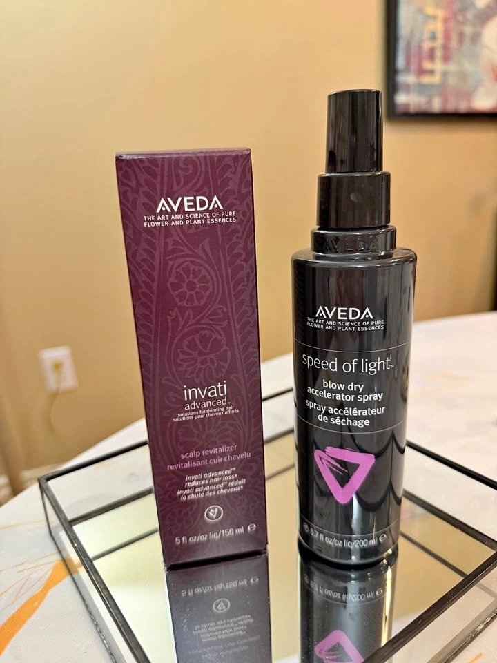 Invanti Advanced Scalp Revitalizer for thinning hair (retails for $94 + tax) and Speed of light blow dry primer (retails for $53 + tax). Selling as a set for $115.