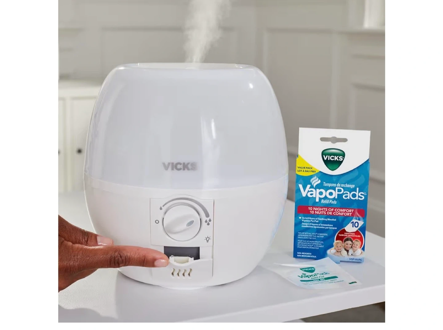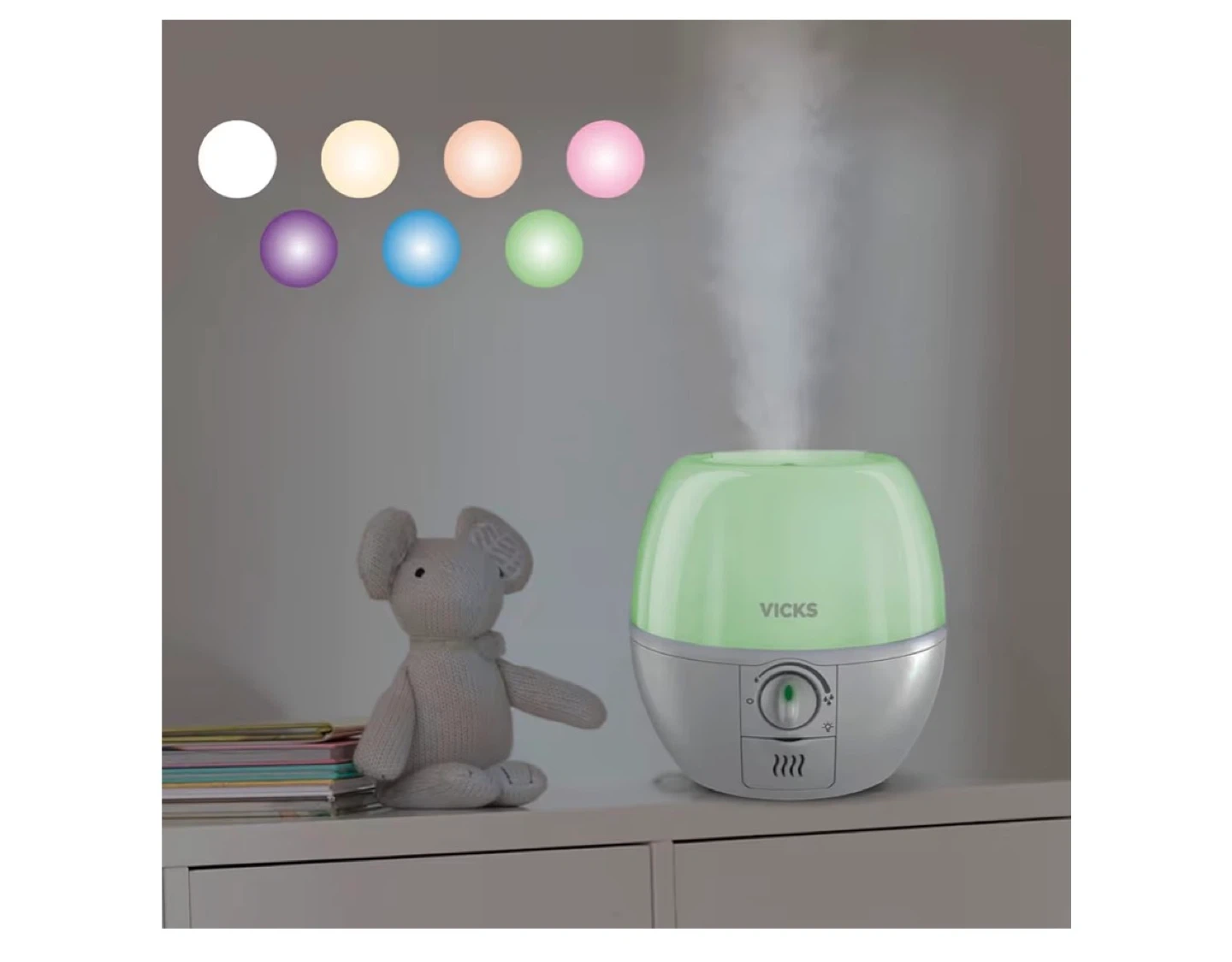 This Vicks humidifier is great for bedrooms. It features an adjustable mist control and a quiet operation. Includes a soft, color-changing nightlight that's perfect for kids!