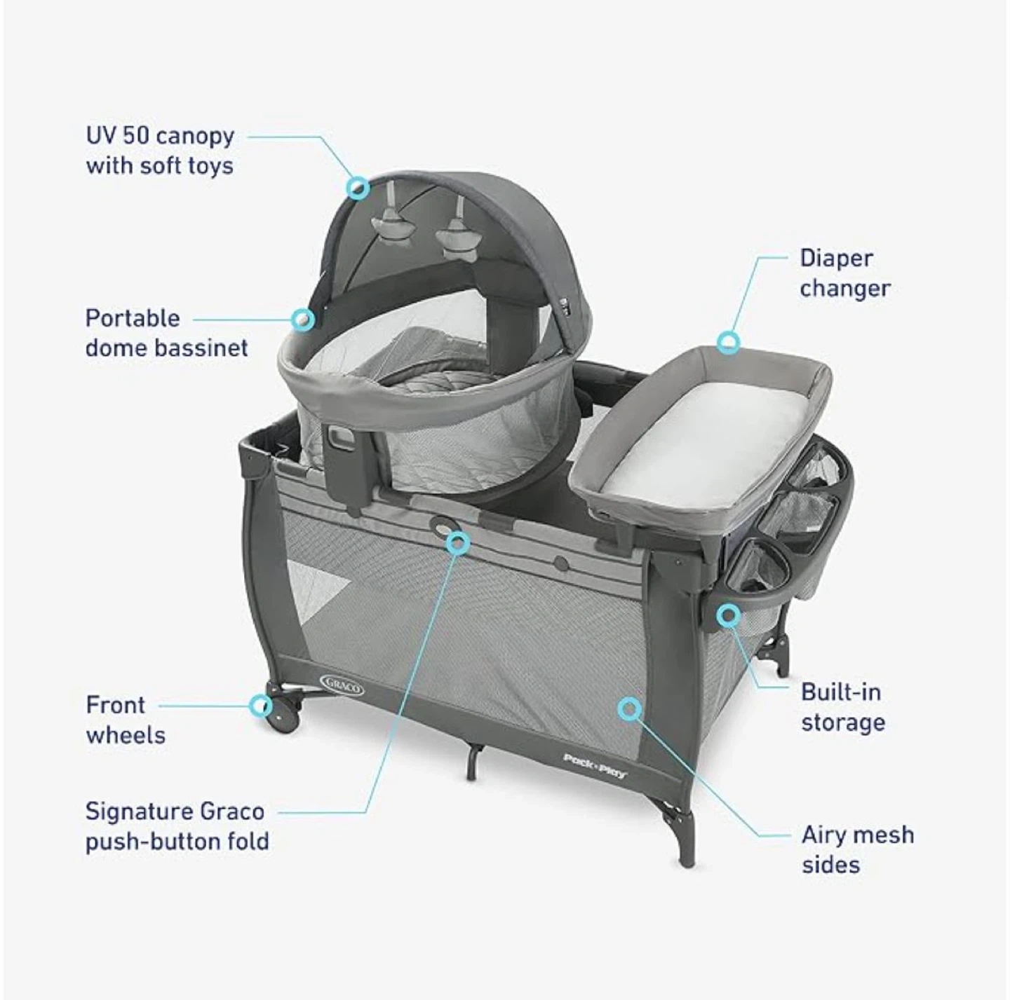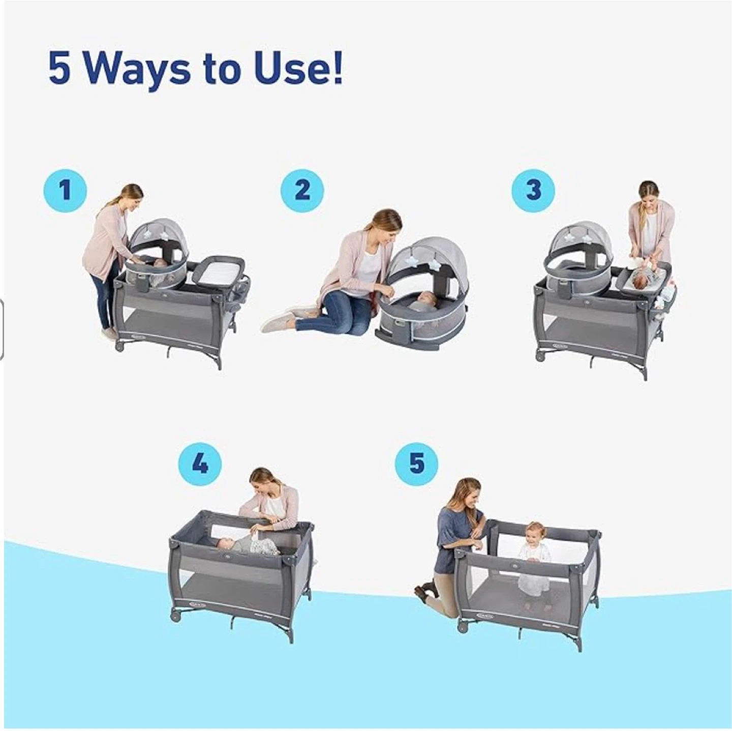 Can be used in multiple ways as your baby grows – from newborn bassinet to playard/toddler space.
