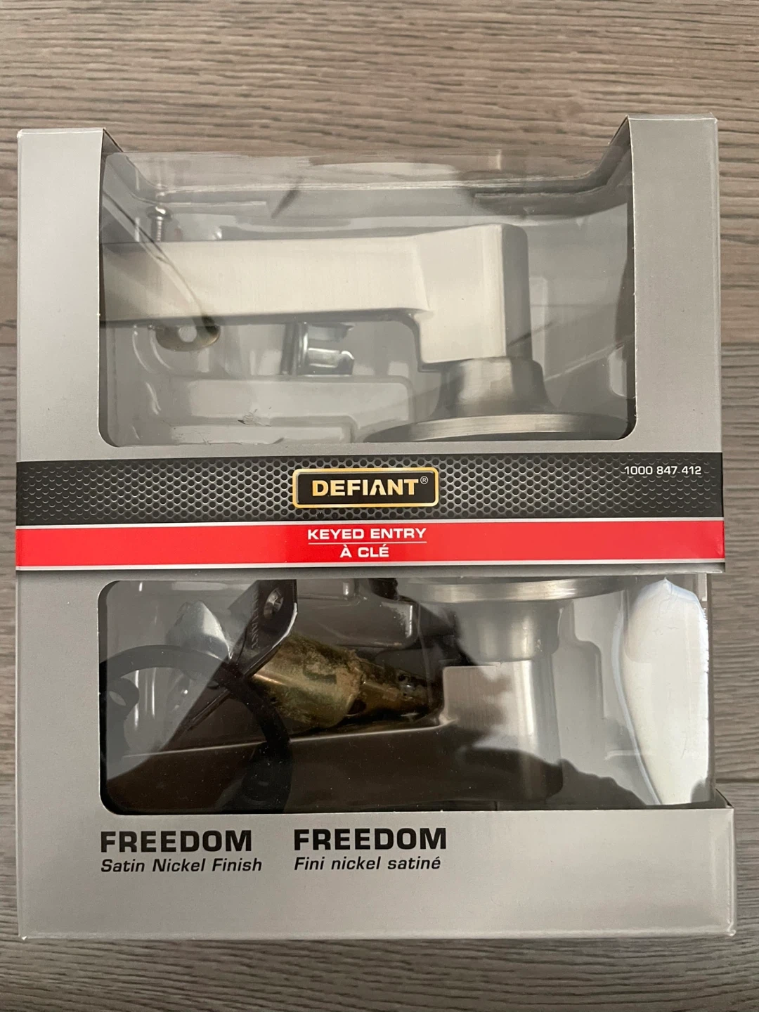 This is a Defiant Freedom keyed entry lockset. It features a satin nickel finish. This lockset is suitable for exterior/interior doors.