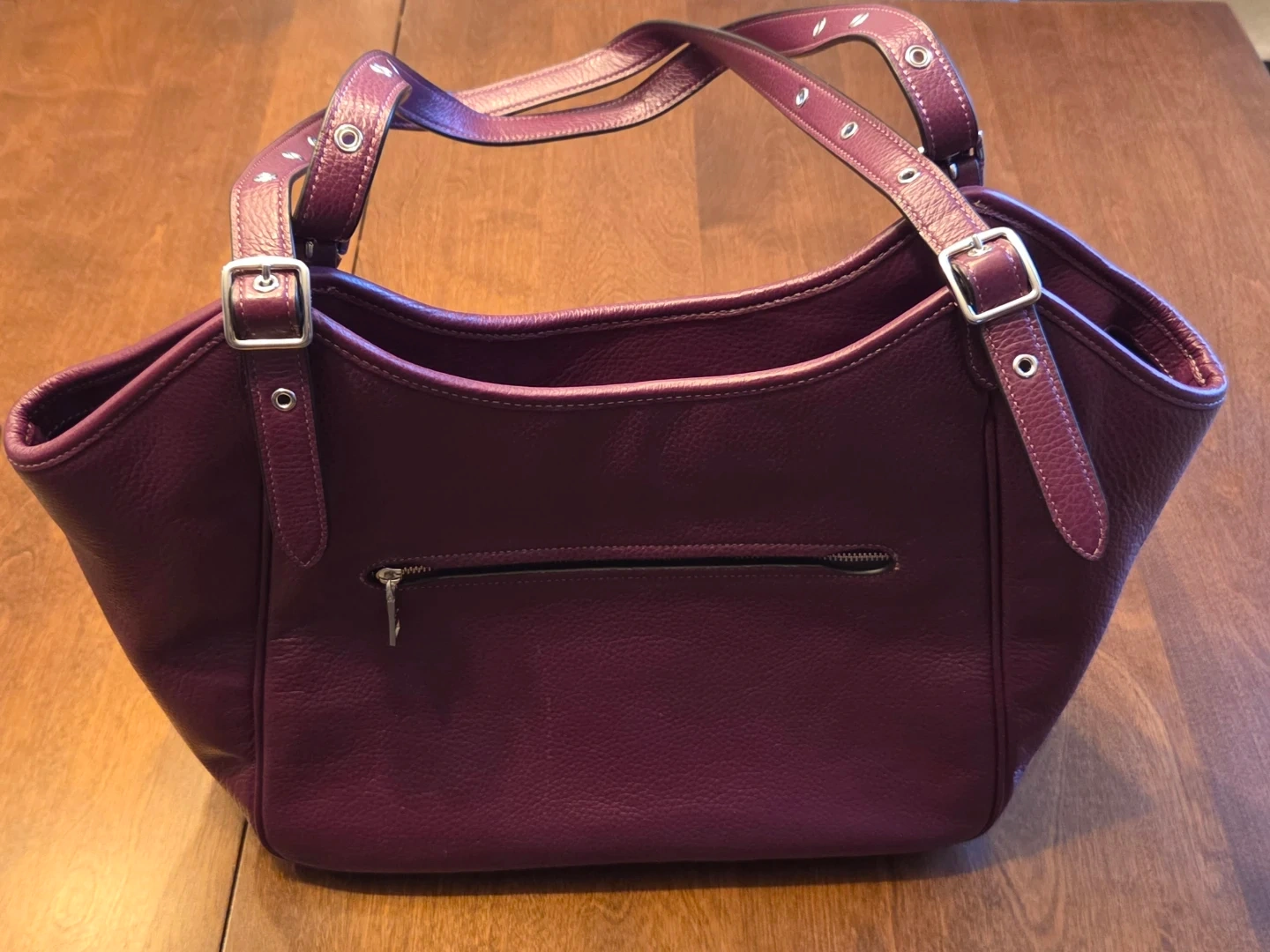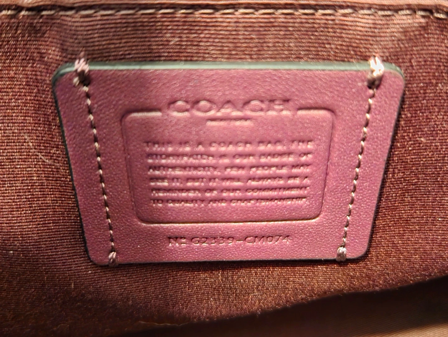 Coach Meadow shoulder bag in Deep Berry with silver hardware, zip closure and exterior zip pocket.
