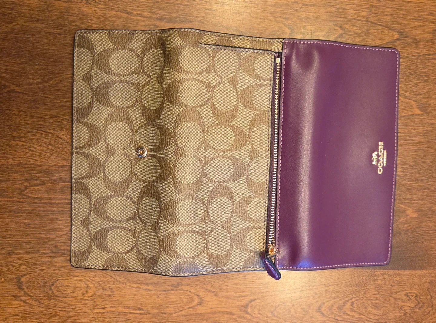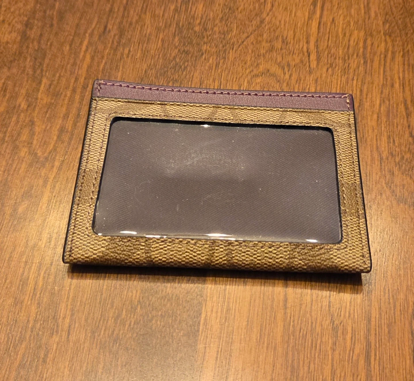 Trifold wallet in Deep Berry/Khaki with muliple card slots and an ID window