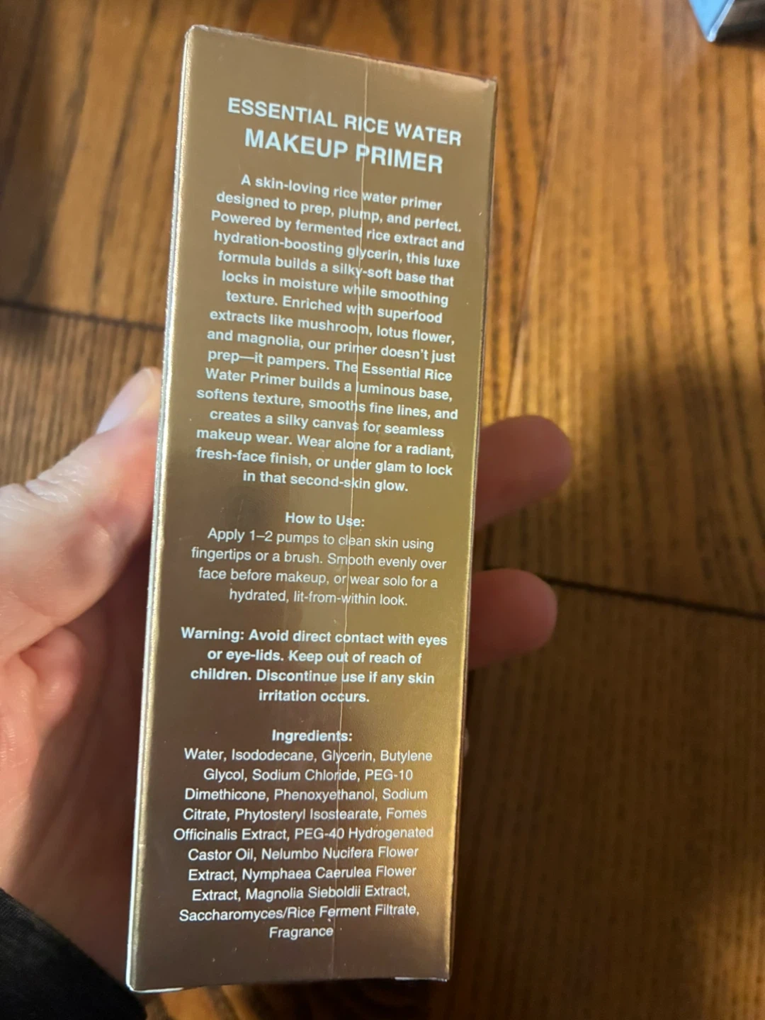 This is the Bisha Essential Rice Water Makeup Primer. It's designed to prep, plump, and perfect your skin. The primer builds a luminous base, softens texture, and creates a silky canvas for seamless makeup wear. Apply 1-2 pumps to clean skin before makeup for a hydrated, lit-from-within glow!