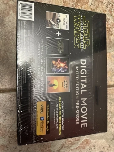 Star Wars: The Force Awakens limited edition digital movie bundle. Includes three collectible posters. Brand new in box, never opened. Still sealed. Experience the thrill of the epic space saga with Harrison Ford, John Boyega, Domhnall Gleeson, Mark Hamill, and Carrie Fisher. Relive the excitement of the 2015 release and add this limited edition movie to your collection today.