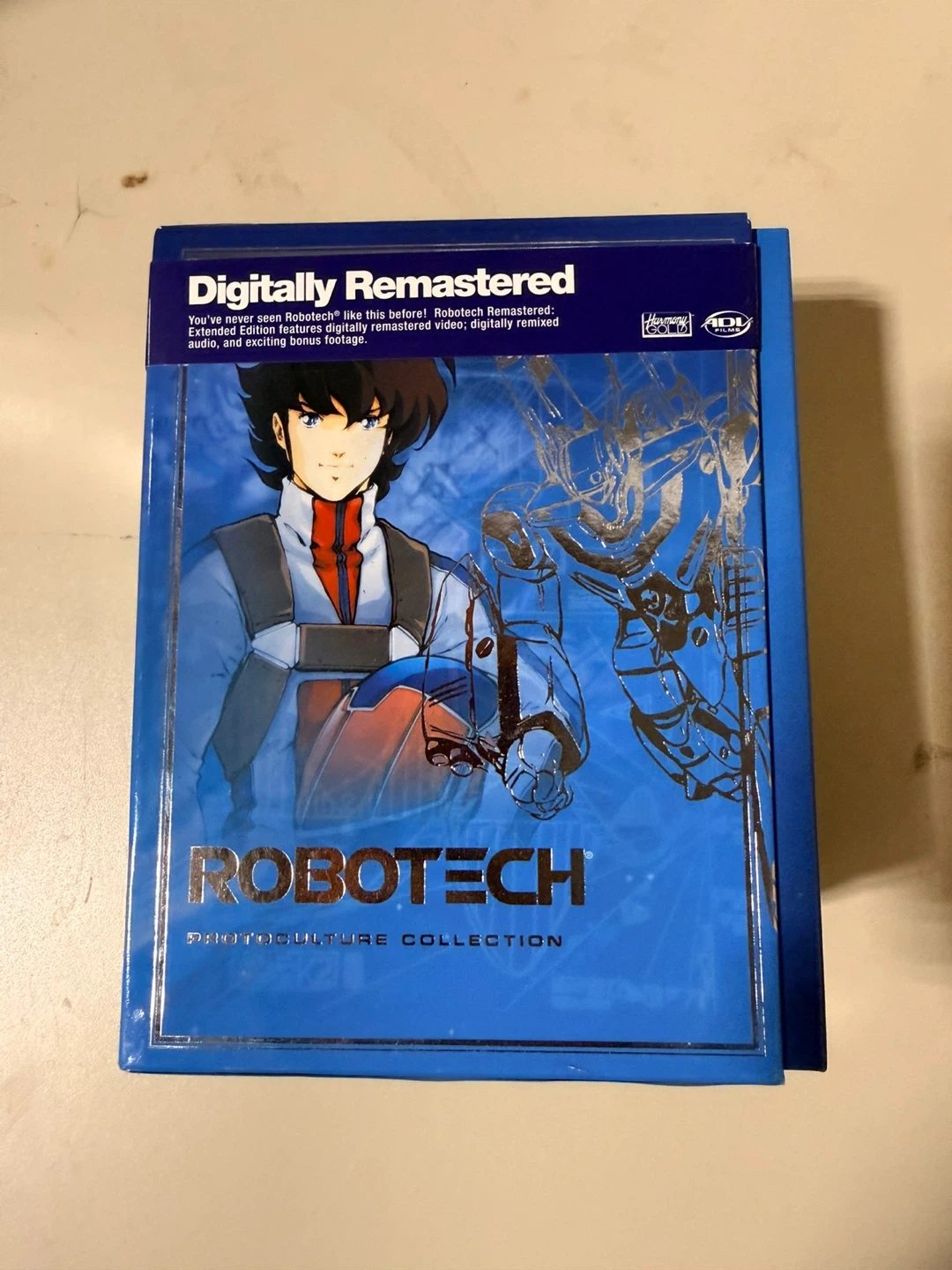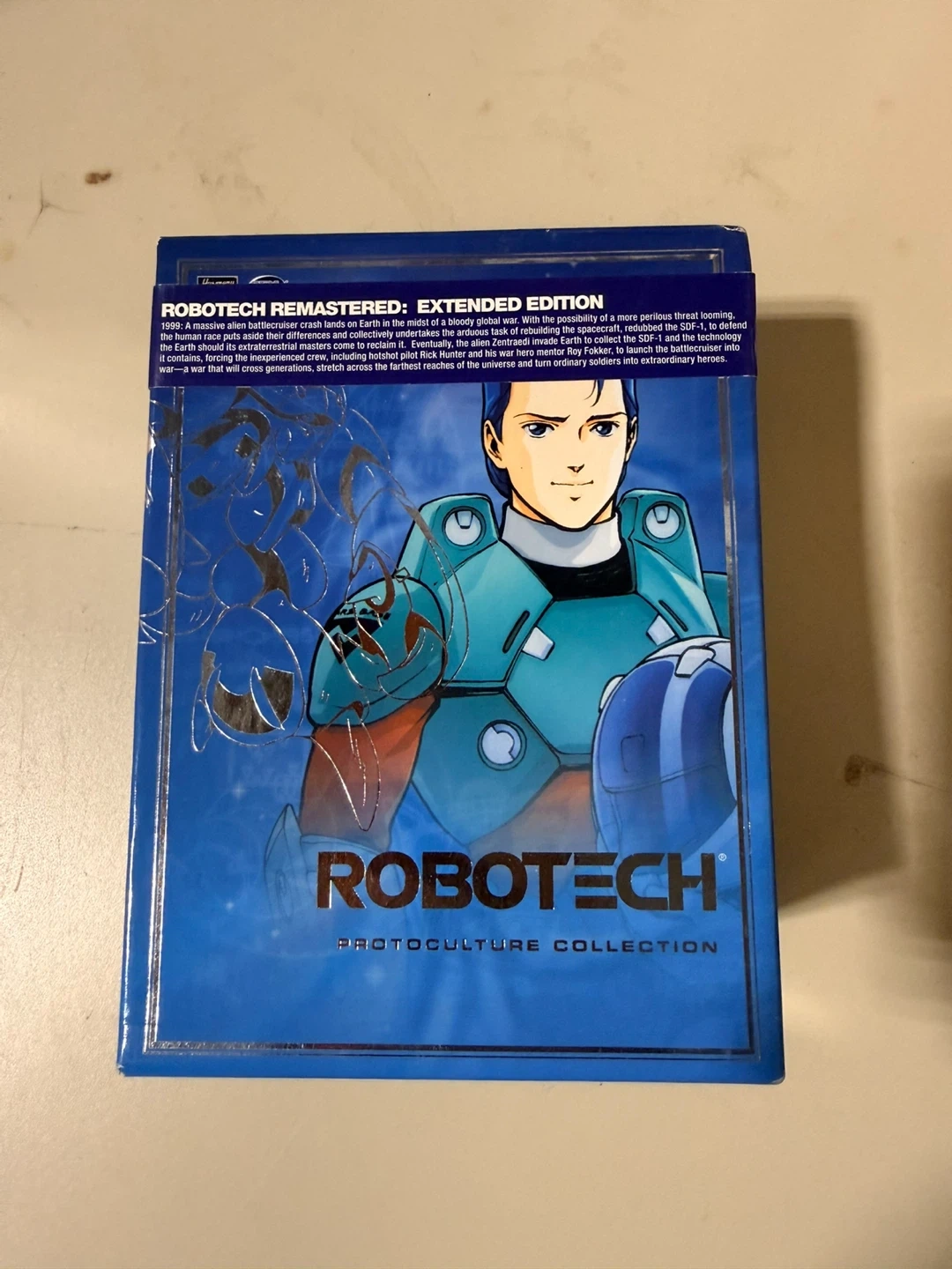 This is the Robotech Remastered: Extended Edition Protoculture Collection. It features digitally remastered video and audio, including bonus footage. The collection includes the Macross Saga, Masters, New Generation, and Extra discs.