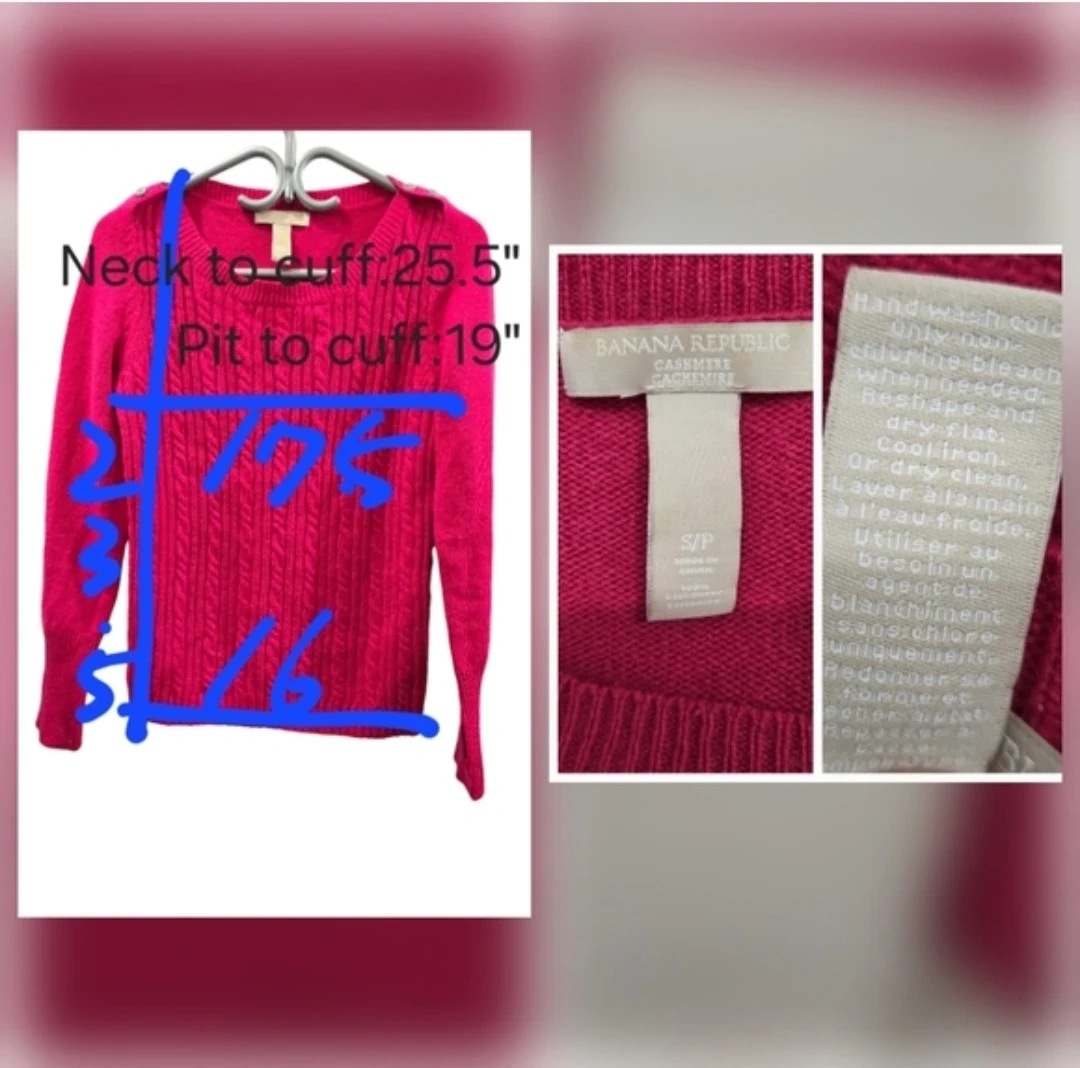 Banana Republic Fuchsia 100% Cashmere Cable Knit Size S