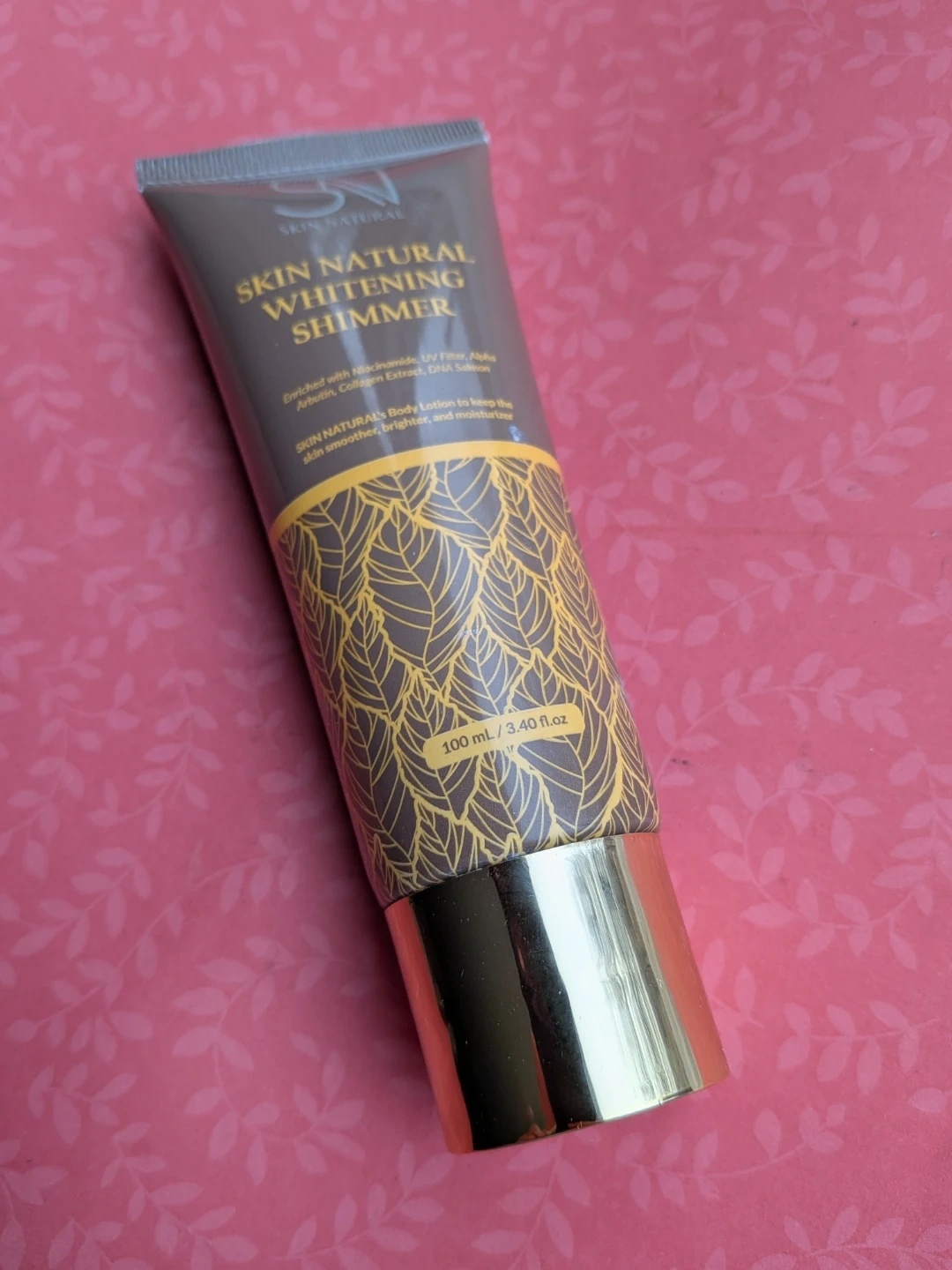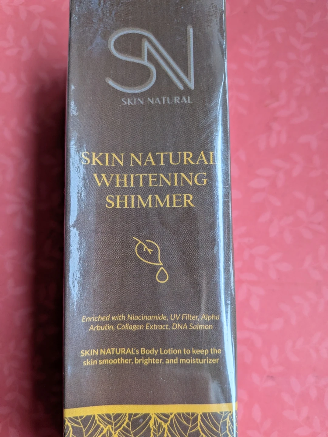 SKIN NATURAL's Whitening Shimmer Body Lotion helps keep skin smoother, brighter, and moisturized. Enriched with Niacinamide, UV Filter, Alpha Arbutin, Collagen Extract, and DNA Salmon. It comes in a 100 ml / 3.40 fl.oz bottle.