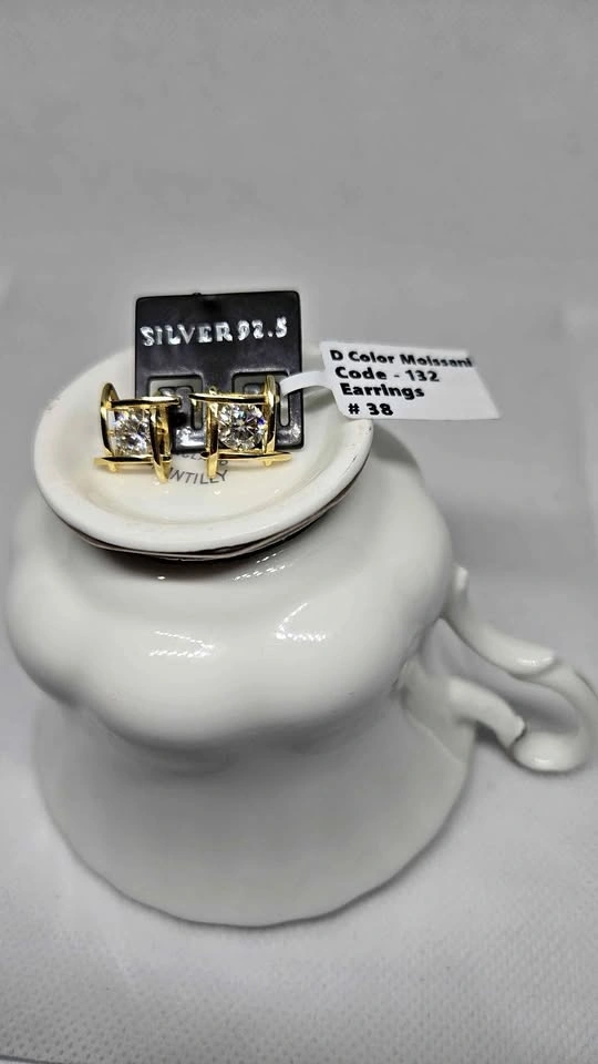 Brilliant 1 carat moissanite earrings (2 carat total). Metal: Gold-plated silver. Color: D, Clarity: VVS1. Comes with GRA certificates and cards. GRA numbers engraved on the stones. Meet up in Richmond (afternoons) or New Westminster (Monday to Wednesday by appointment).