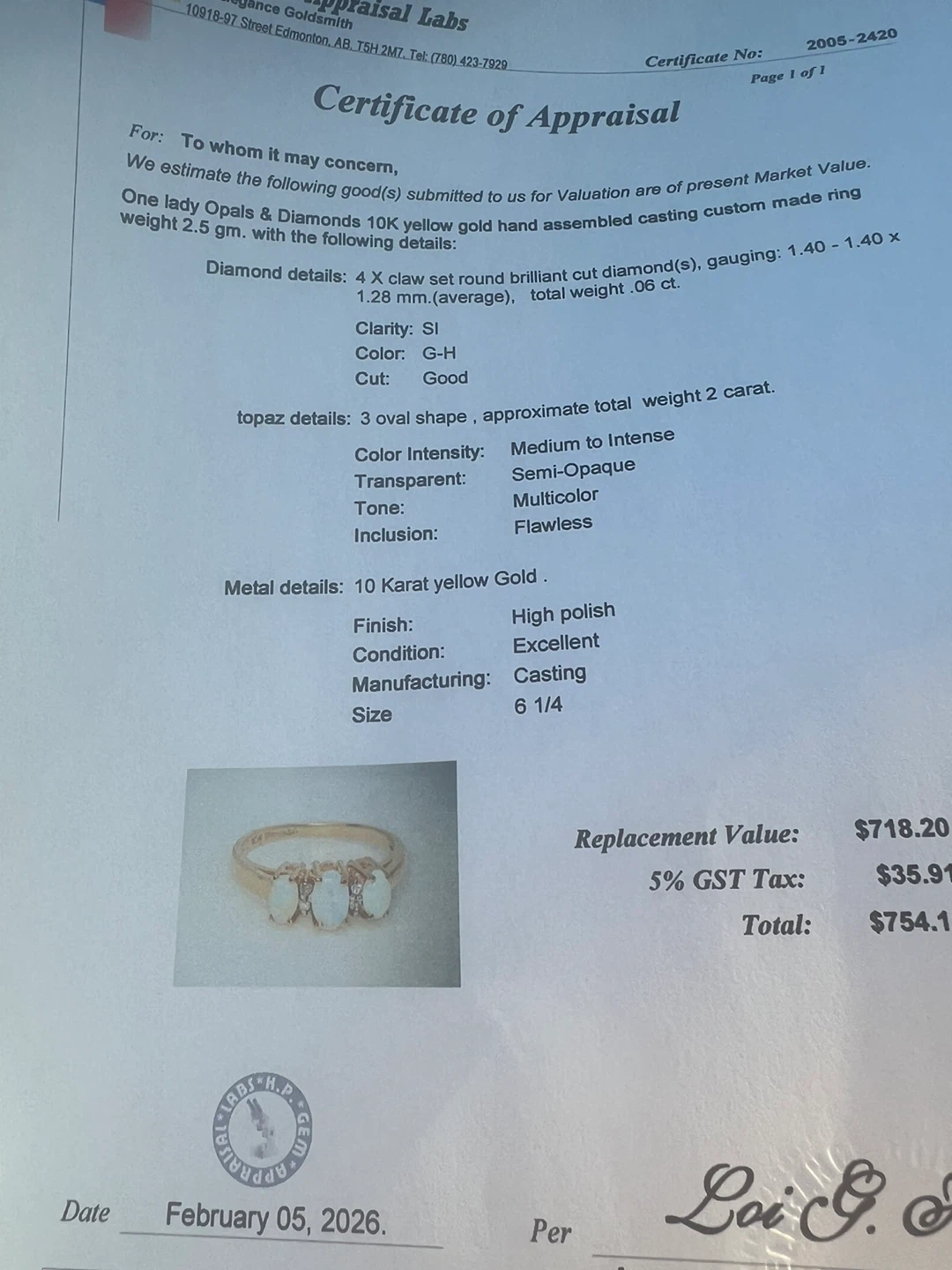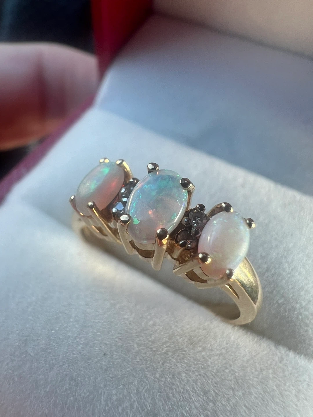10k Yellow Gold Opal and Diamond Ring Size 6 1/4