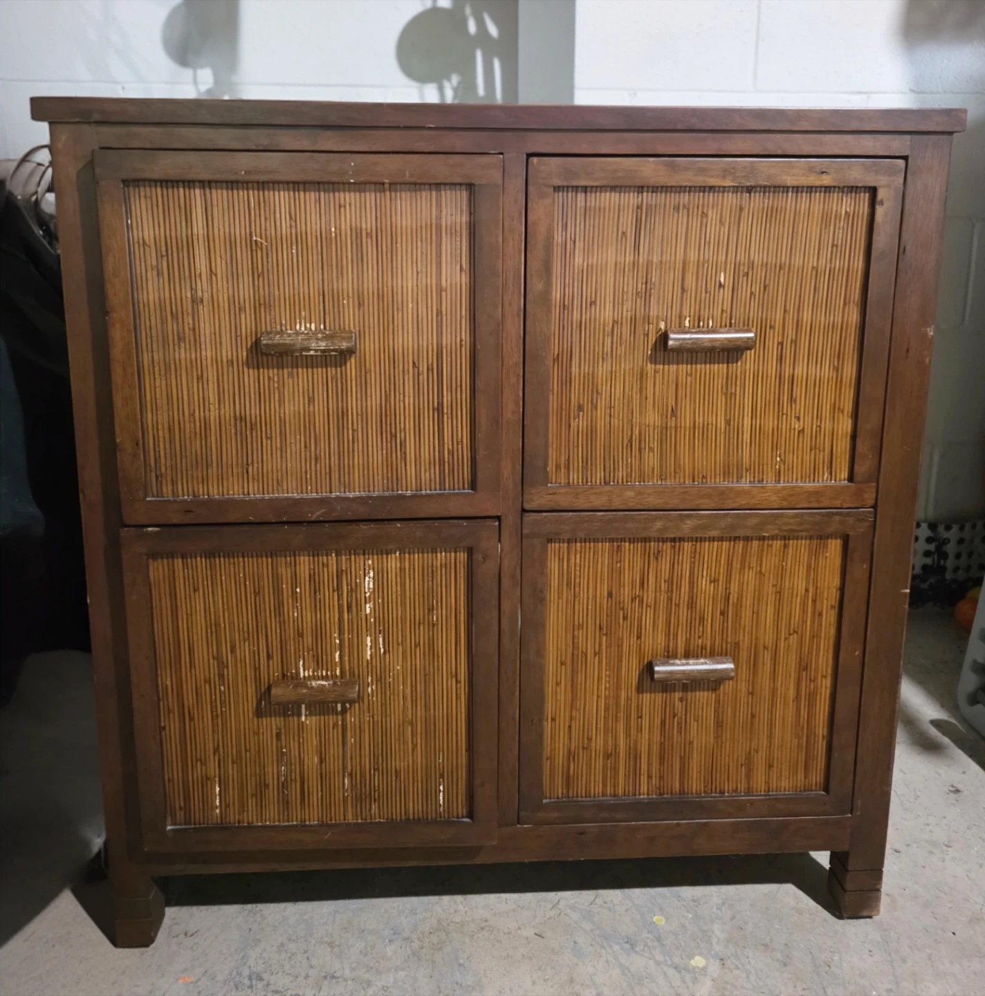 Wooden Cabinet with 4 Rattan Drawers
