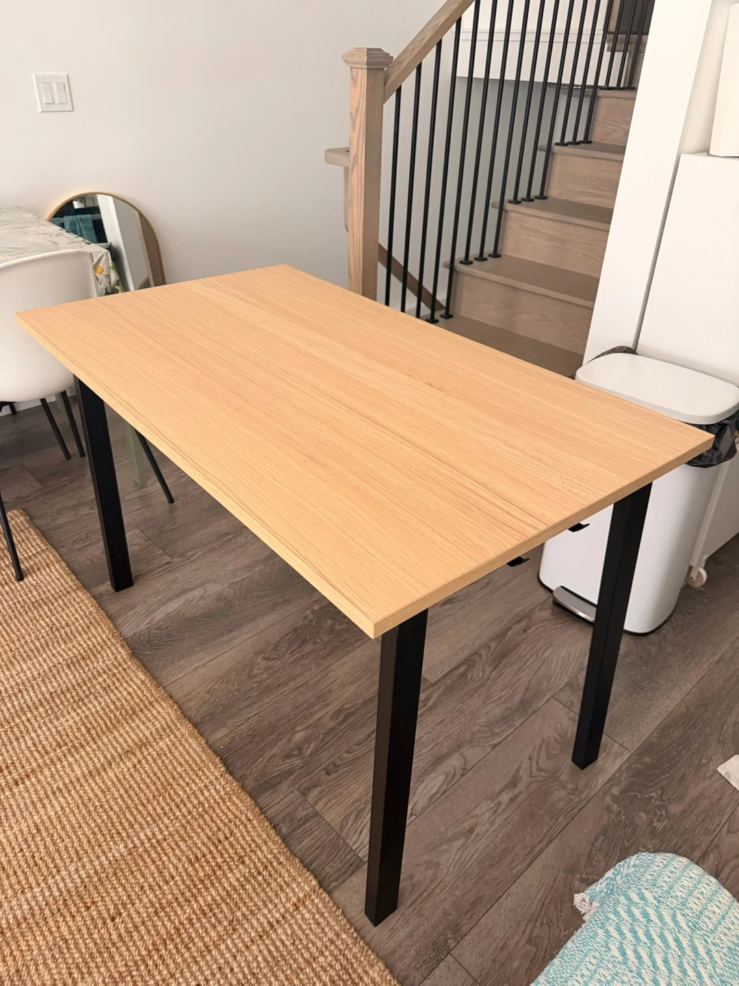 Brand new oak veneer/black table ($250 at Ikea)