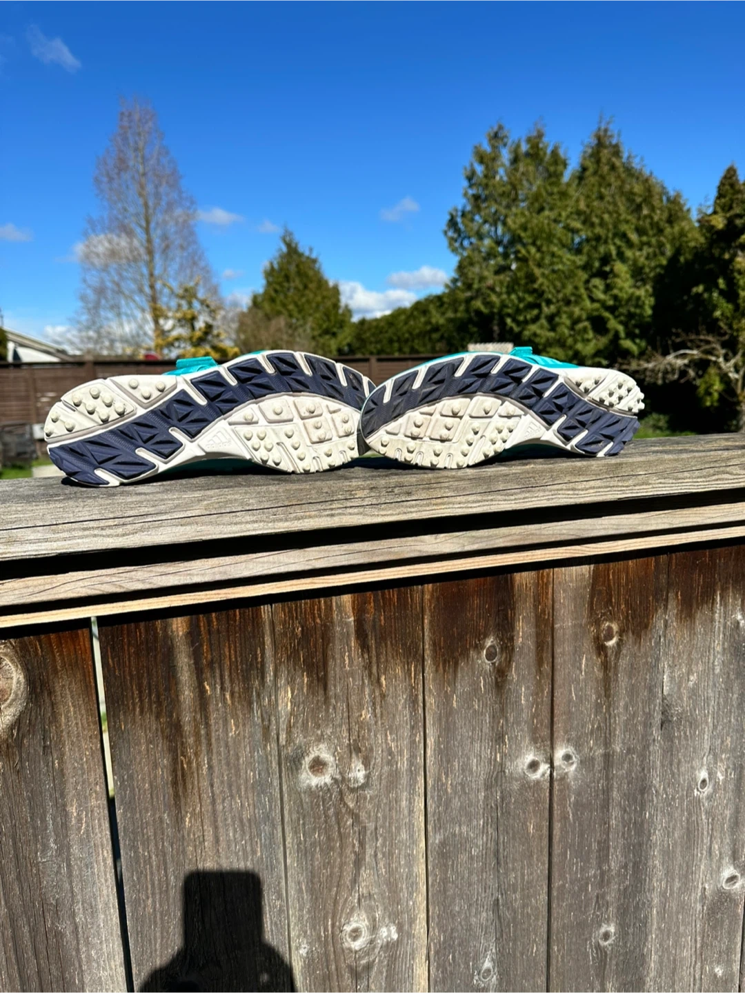 These Adidas shoes come in a vibrant teal blue colour. They feature a knit upper and a secure strap closure system. The durable rubber outsole provides excellent traction.