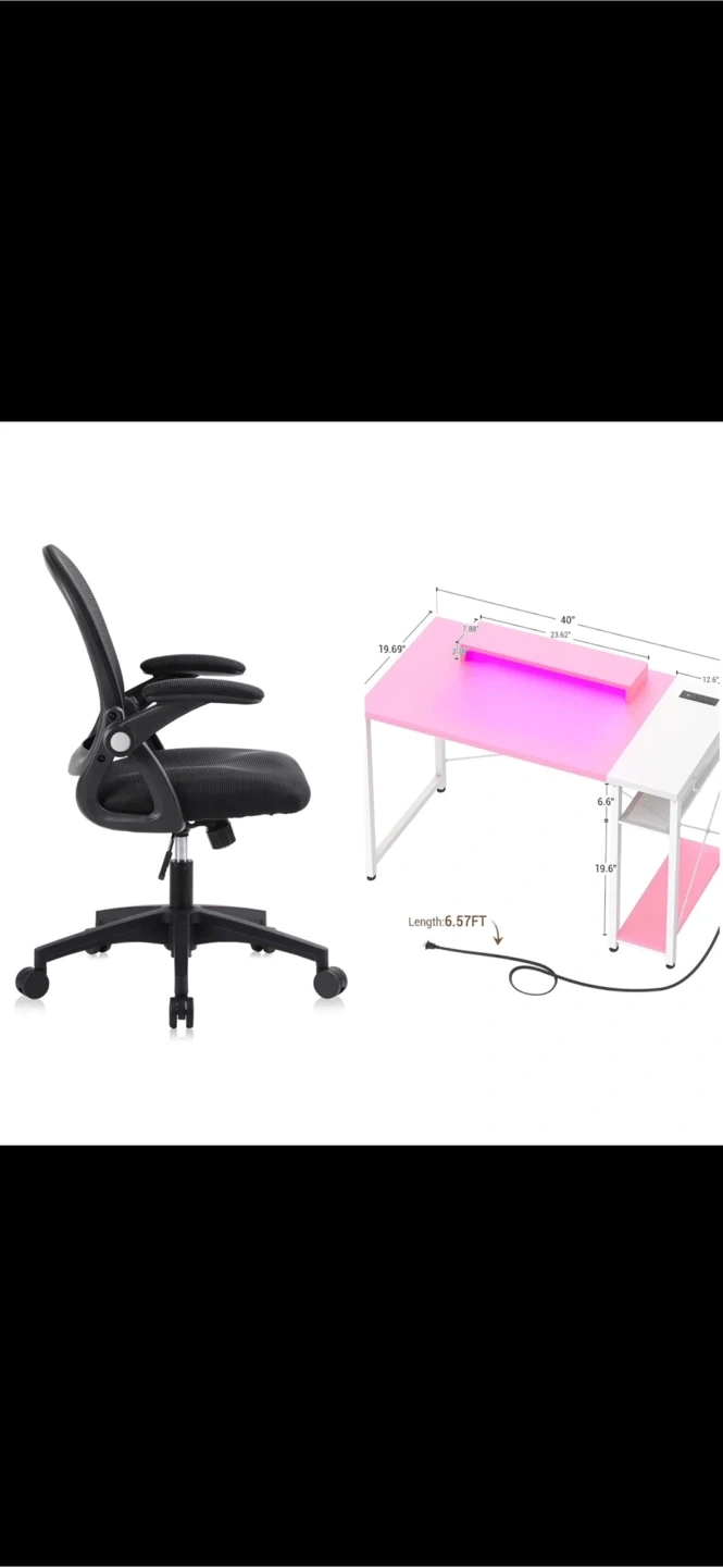 Selling a brand new office setup bundle - includes a modern computer desk with USB ports + LED lights AND a breathable mesh office chair with flip-up arms. Perfect for your home office, bedroom, or gaming space.