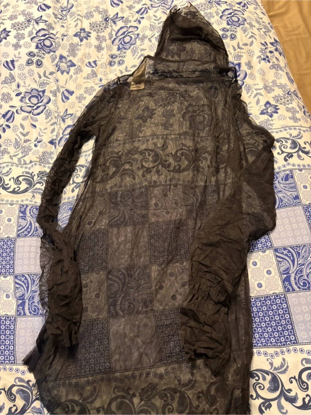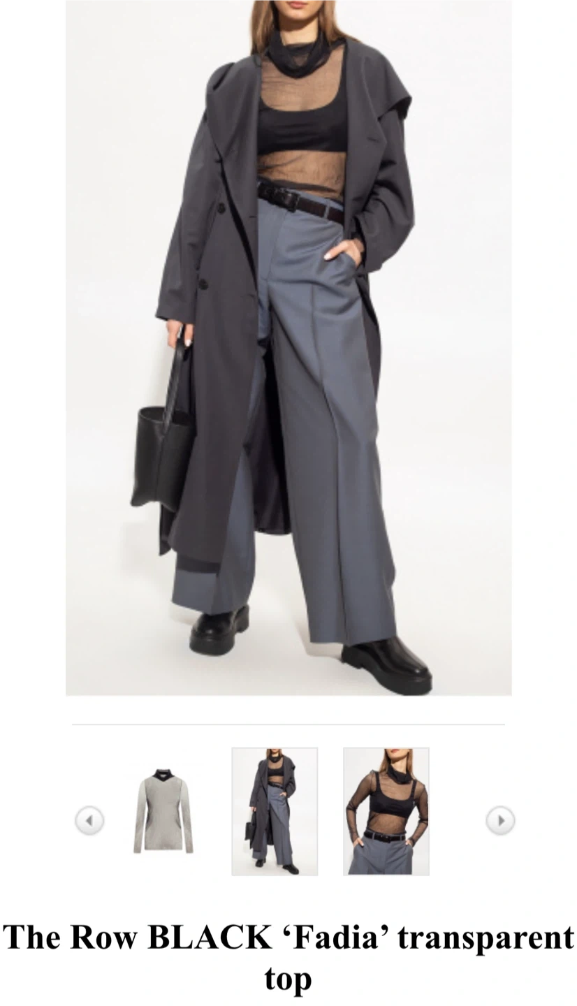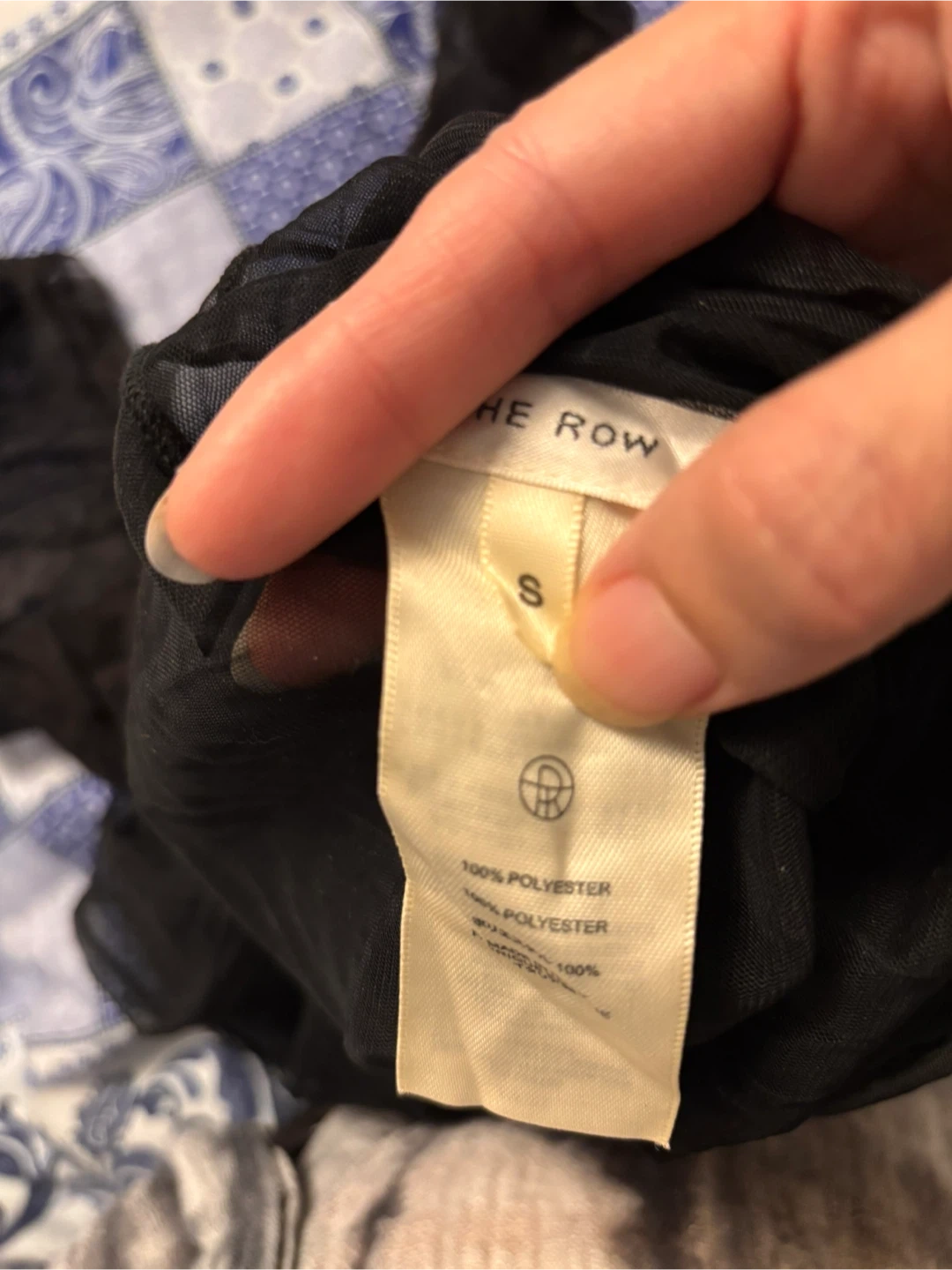 Selling a The Row 'Fadia' transparent top in size small. It's made of 100% polyester and has a unique design. Perfect for layering or making a statement!