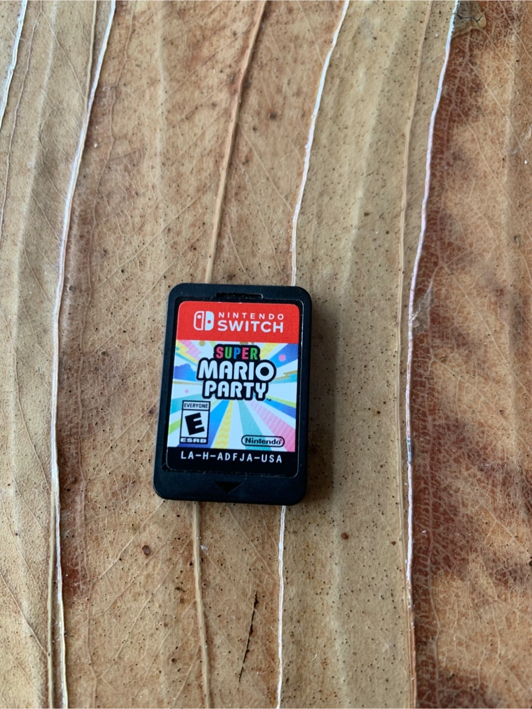 This is the Super Mario Party game cartridge for the Nintendo Switch. It's the game disc for the console. The ESRB rating is E for Everyone.