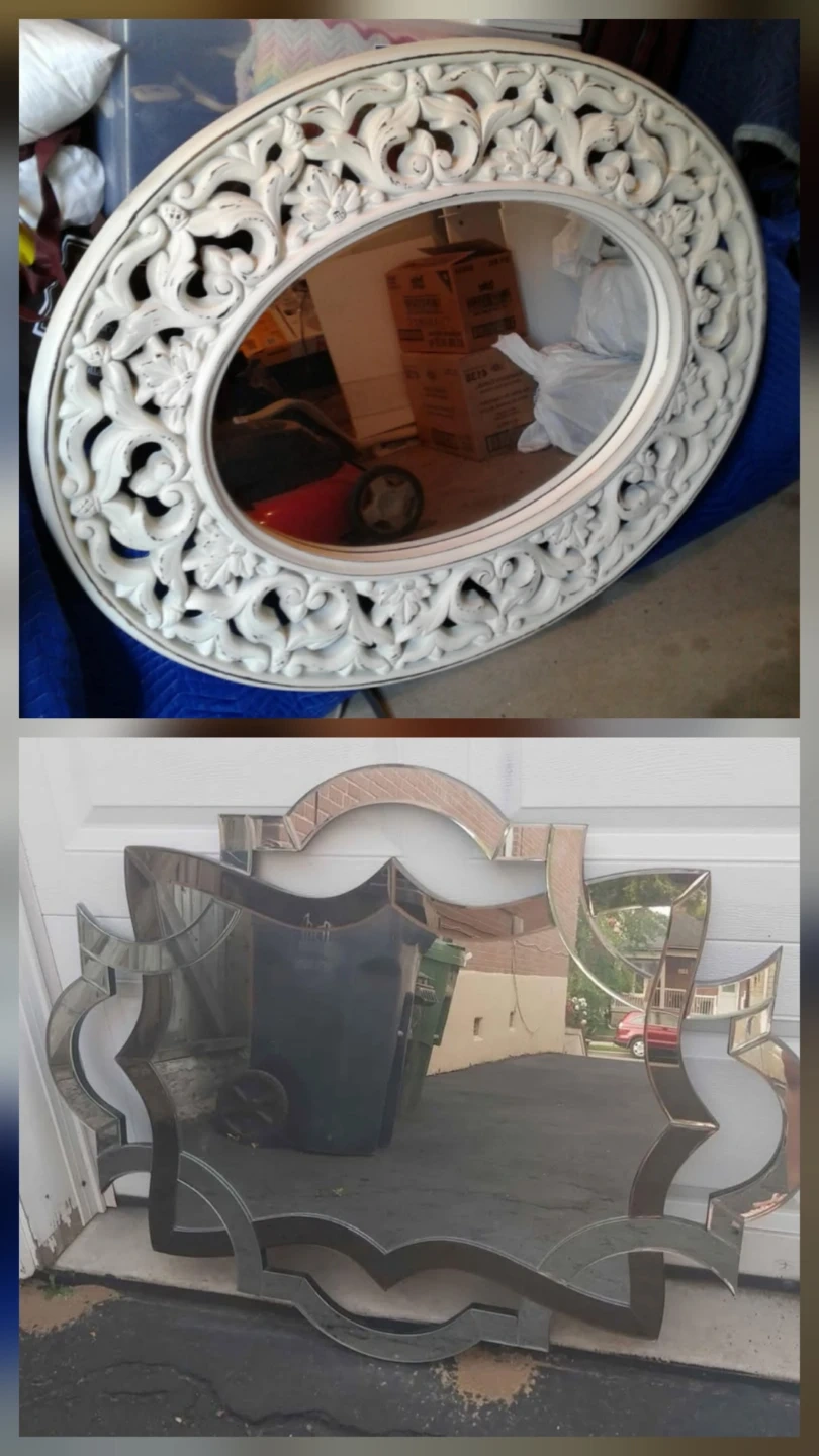 - Large white victorian style mirror. 4 x 5 feet.