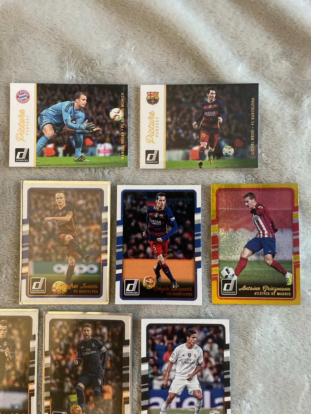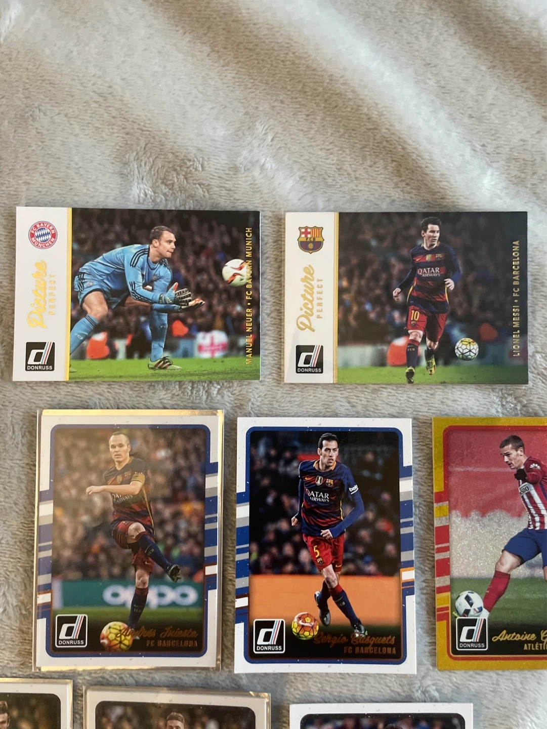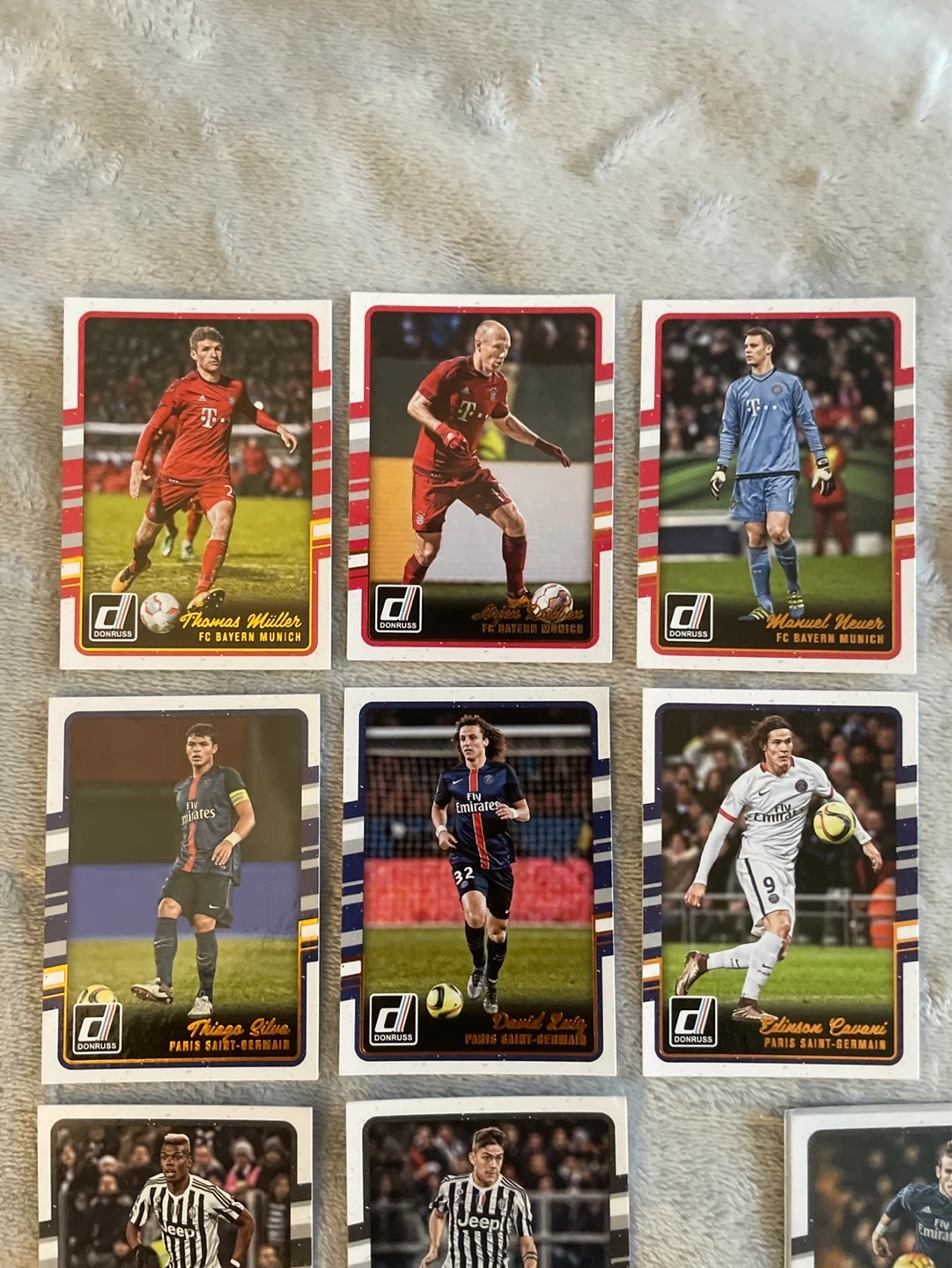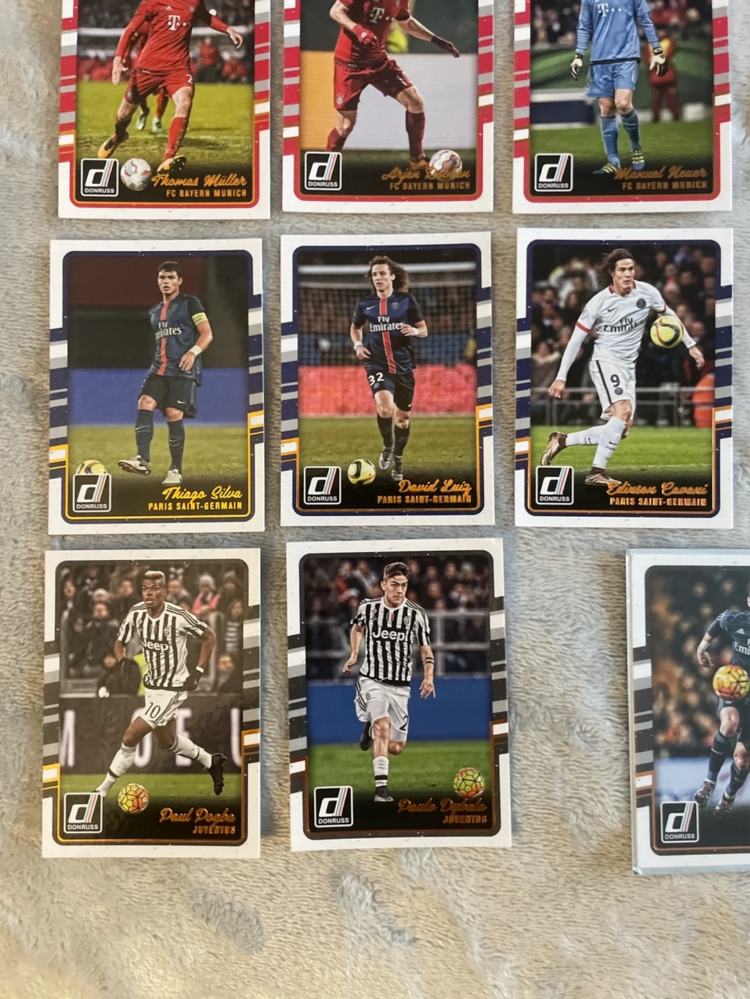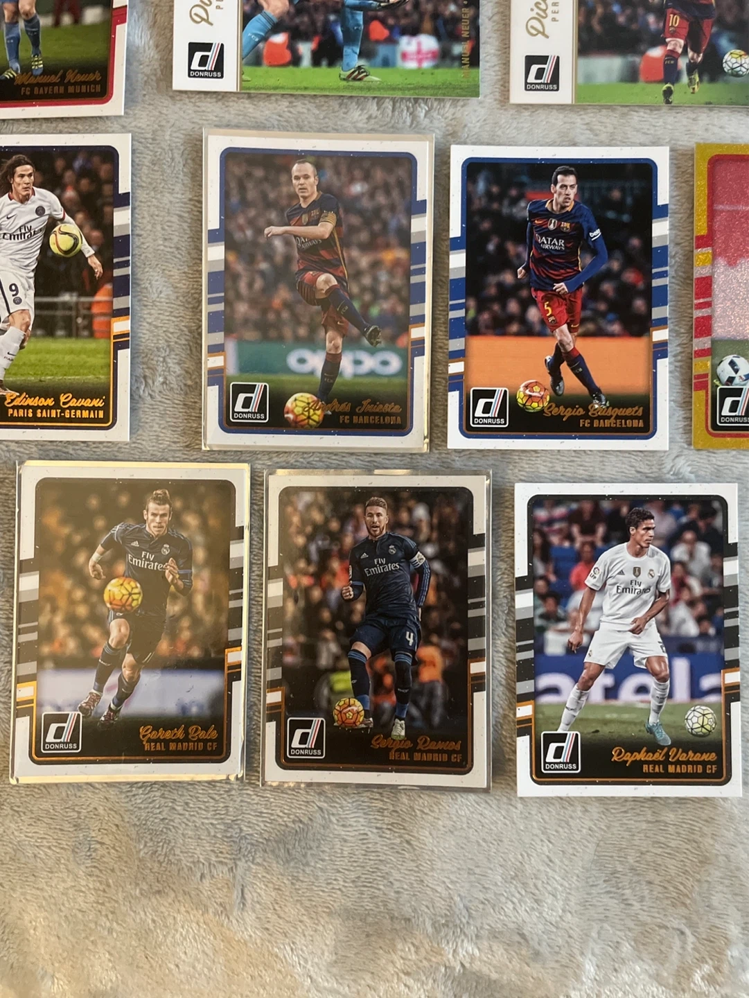 Collection of Donruss soccer trading cards featuring various players. A great addition for any soccer fan's collection! I also sell individually if you want.