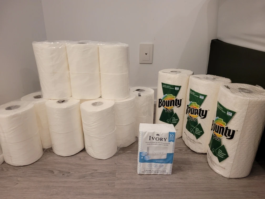 Selling a bunch of Bounty Plus paper towels, toilet papers and a 10-pack of Ivory bar soap.