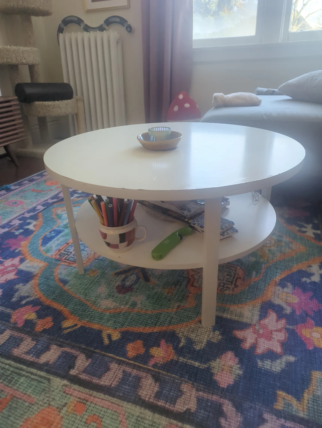 Free White Round Coffee Table with Shelf