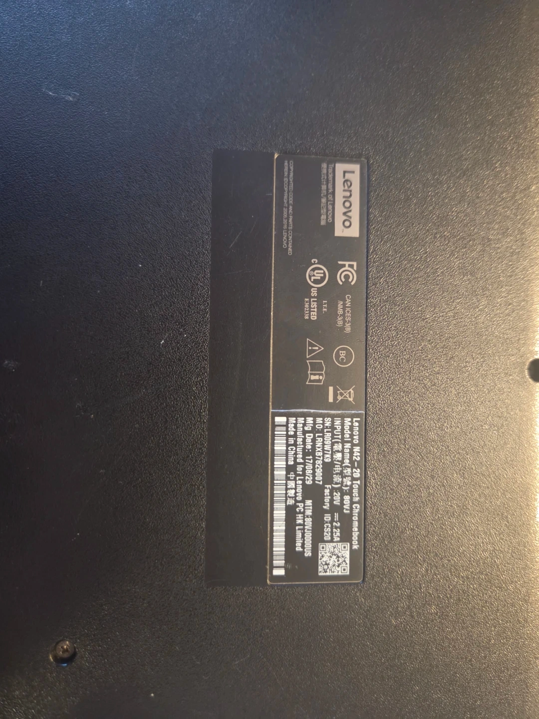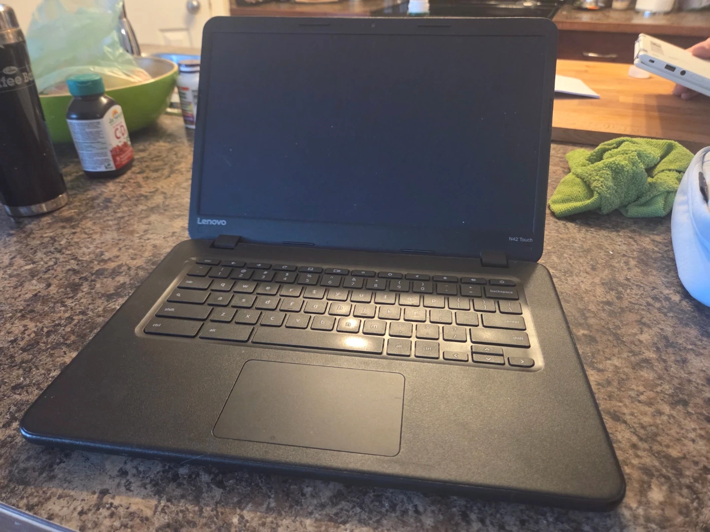 Black Acer Chromebook Lenovo N-42-20. Doesn't have the charger and power adapter.
