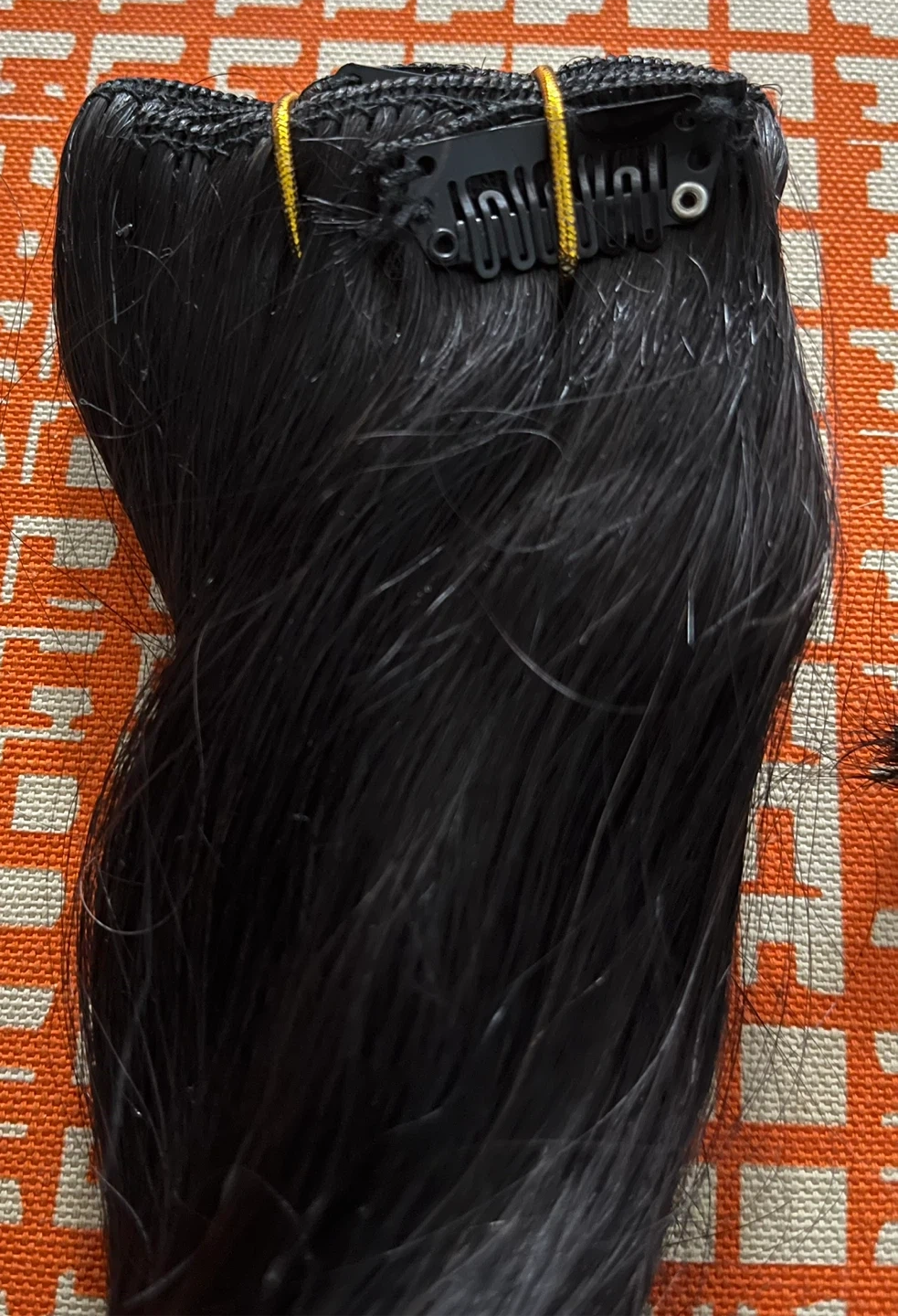 Licoville premium human hair extensions. Clip-in style, 20 inches long, 7 pieces. Human hair material. These are great for adding length or volume!