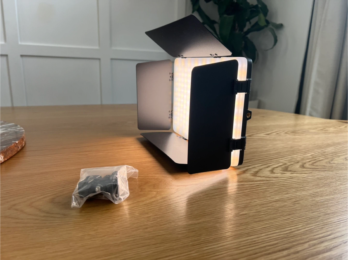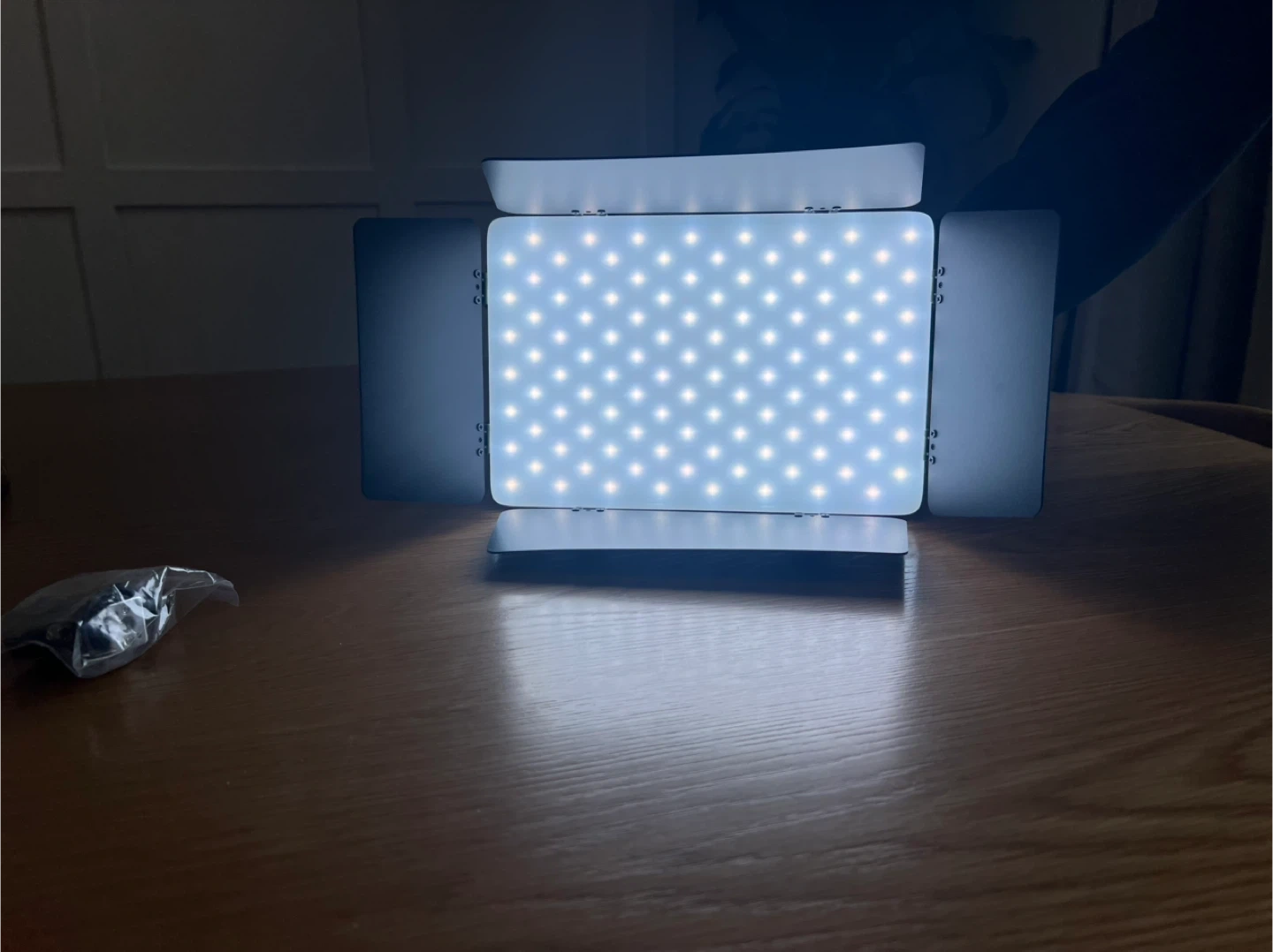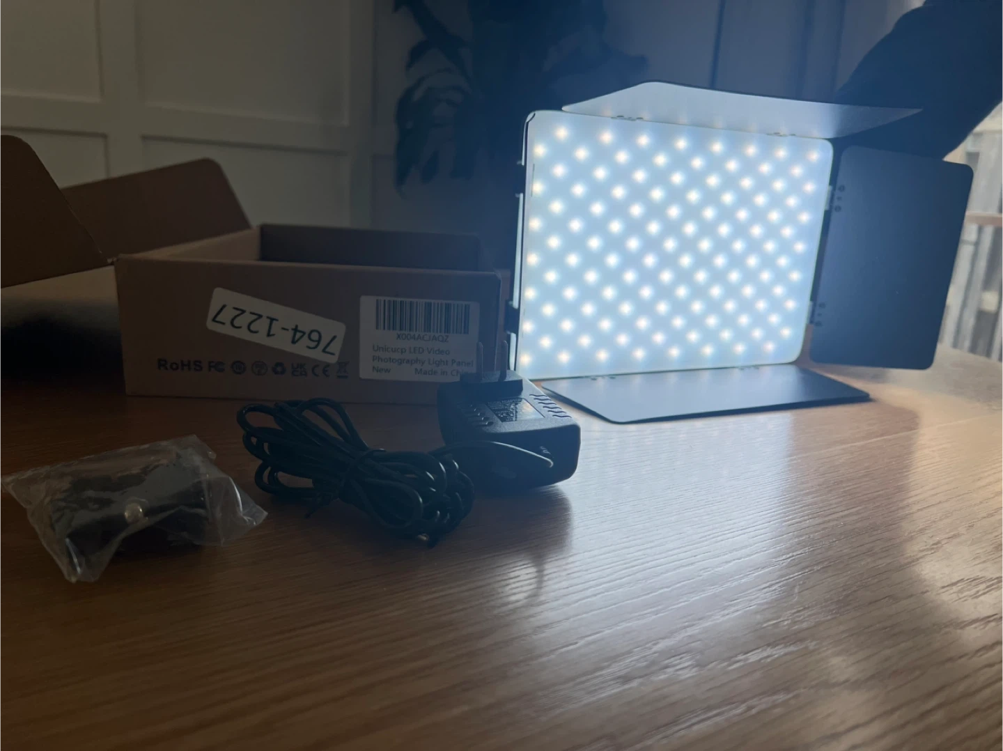 This Unicarp LED panel light provides adjustable brightness and colour temperature. It's great for photography and videography lighting setups. Includes AC adapter and mounting hardware.
