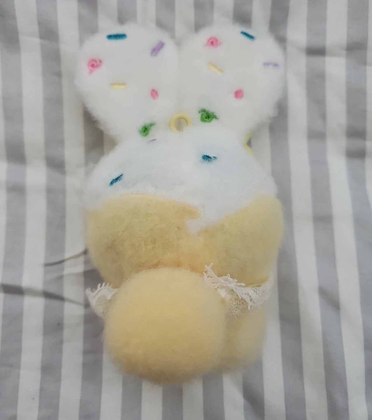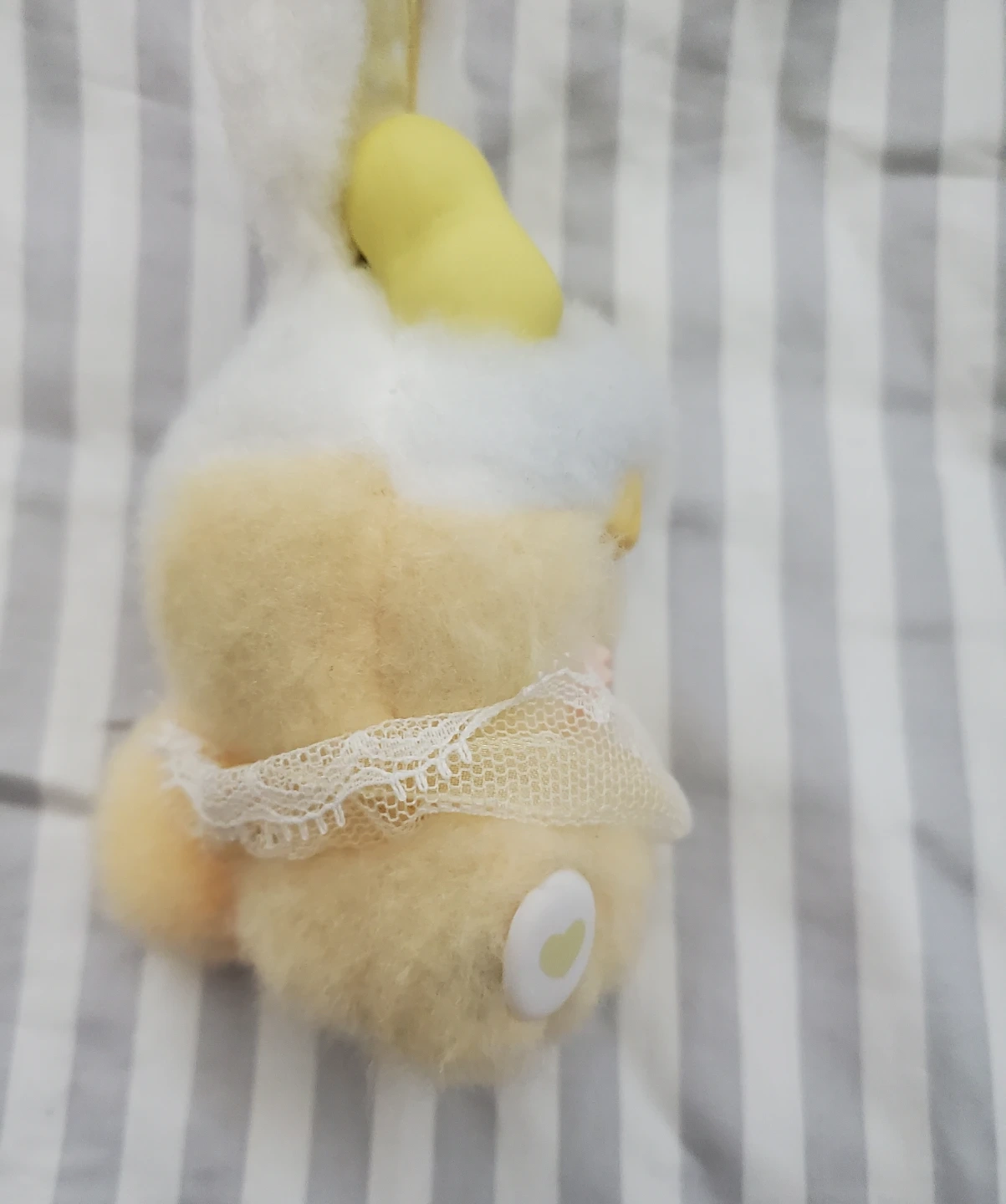 Not responsible for any manufacturer defects. Small marks on foot and next to foot. Small mark on yellow ribbon.