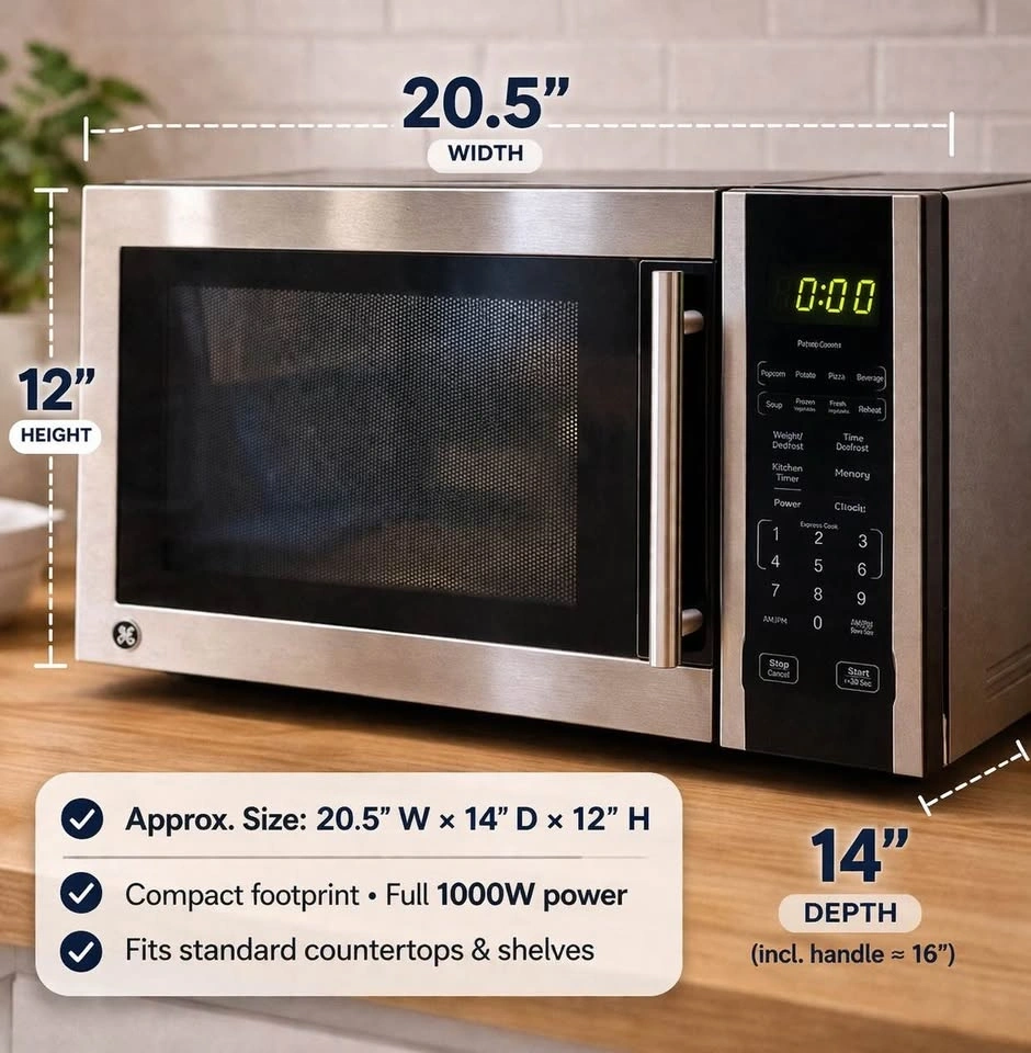 GE Stainless Steel Microwave – 1000W | Clean, Modern & Reliable