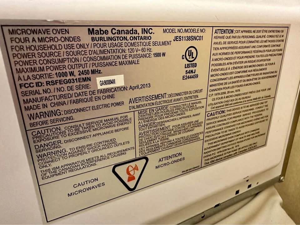 Model: JES1138SNC01 (GE / Mabe Canada)