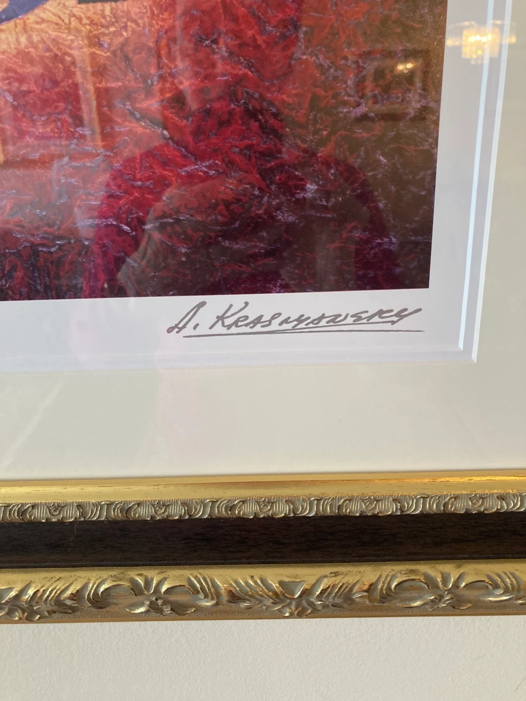 Selling a framed seriolithograph in colour on rice paper by Krasnyansky, titled Officer's Celebration #7. This piece is from Park West Gallery and comes with a Certificate of Authenticity. The dimensions are 16 3/4" x 22 1/2". Excellent condition no damage on the frame.
