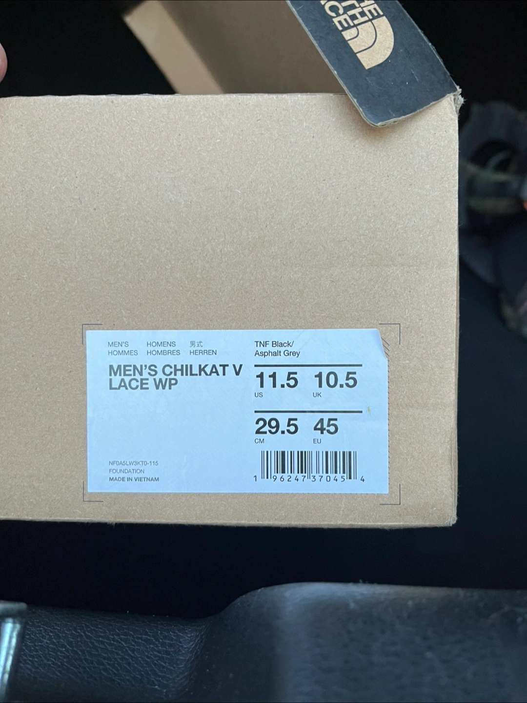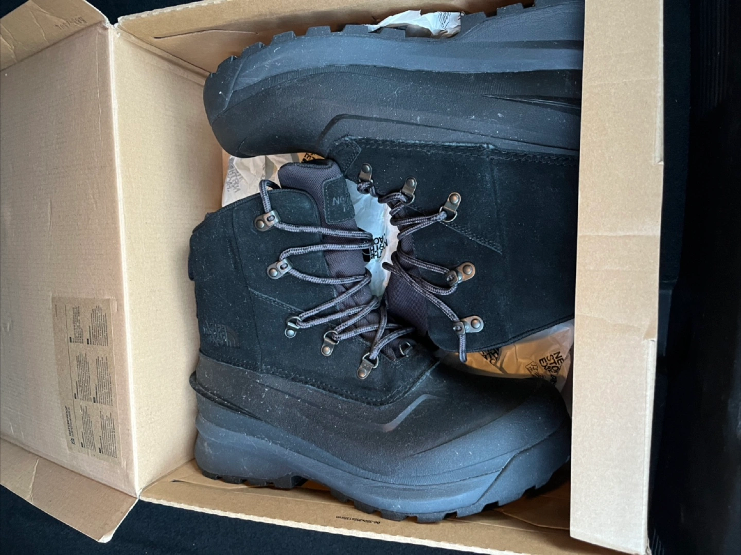 Selling a pair of The North Face Chilkat V Lace WP boots in men's size US 11.5! They come in TNF Black/Asphalt Grey and include the original box