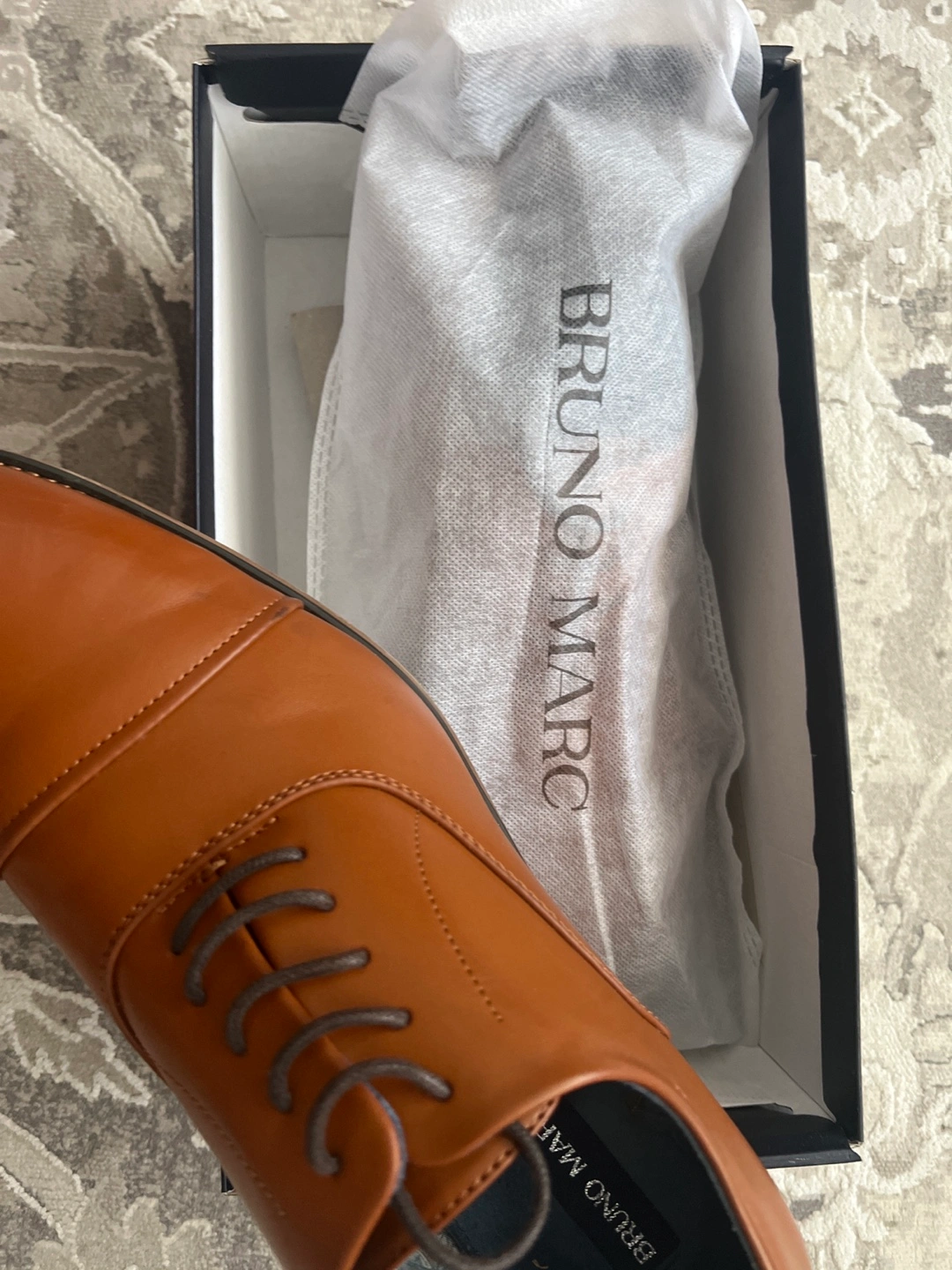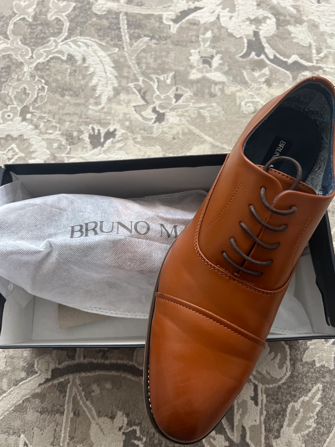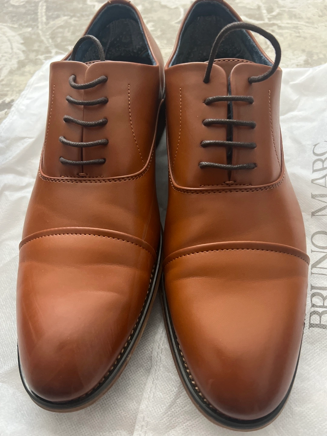Men's dress shoes. Brown leather oxfords. Lace-up closure. In original box. Worn once