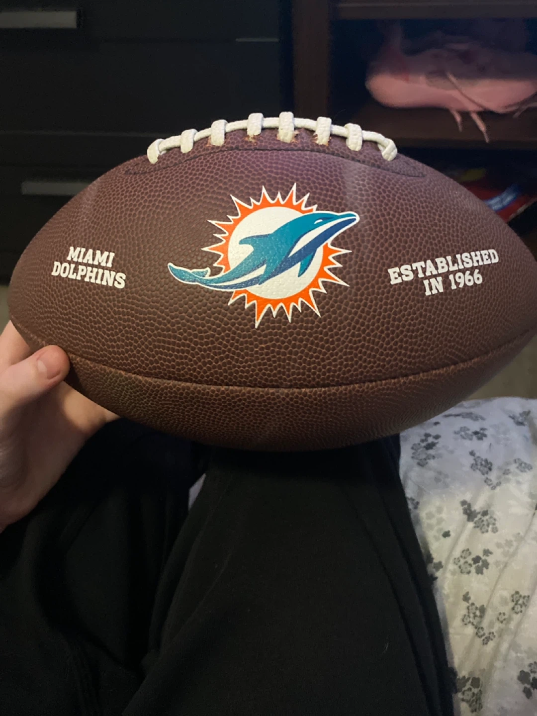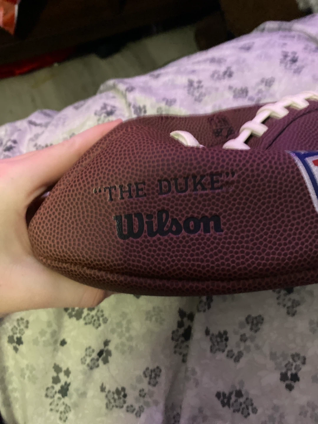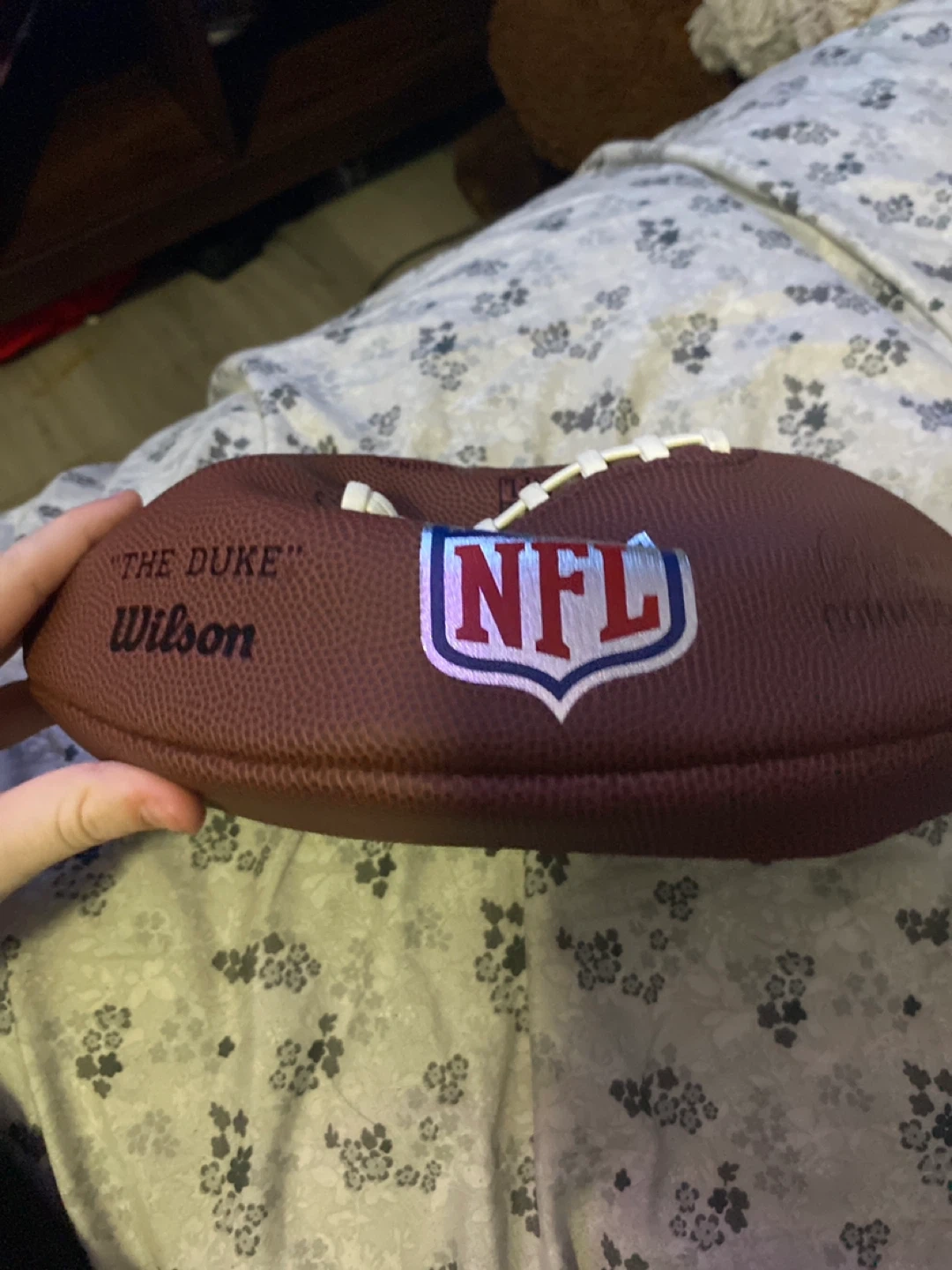 Selling a Wilson "The Duke" NFL football 100% real got it from fanatics It has the NFL logo on it also it’s deflated. The other one has a Miami Dolphins logo on it also it has been used like twice